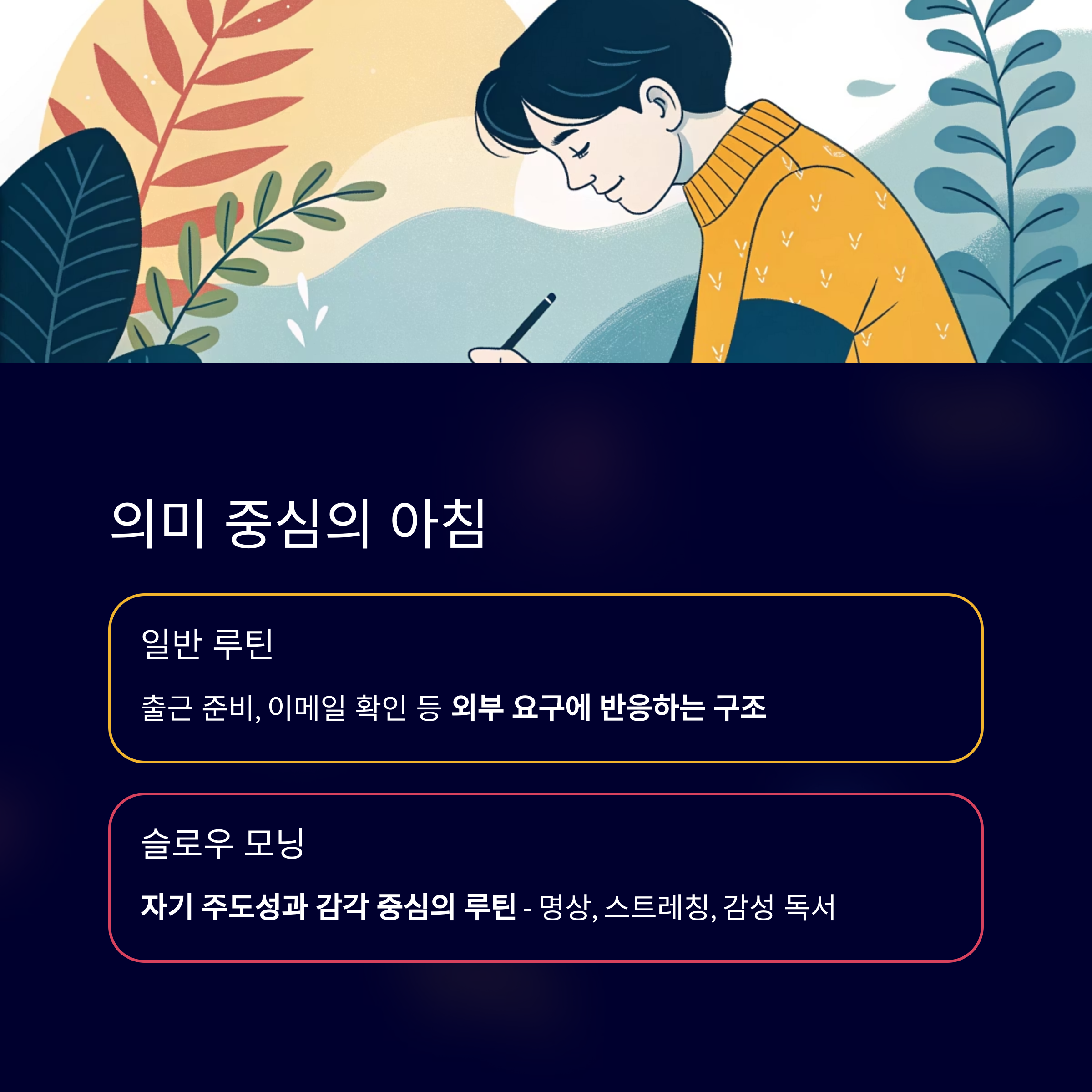 반면 슬로우 모닝은 자기 주도성과 감각 중심의 루틴을 지향합니다.