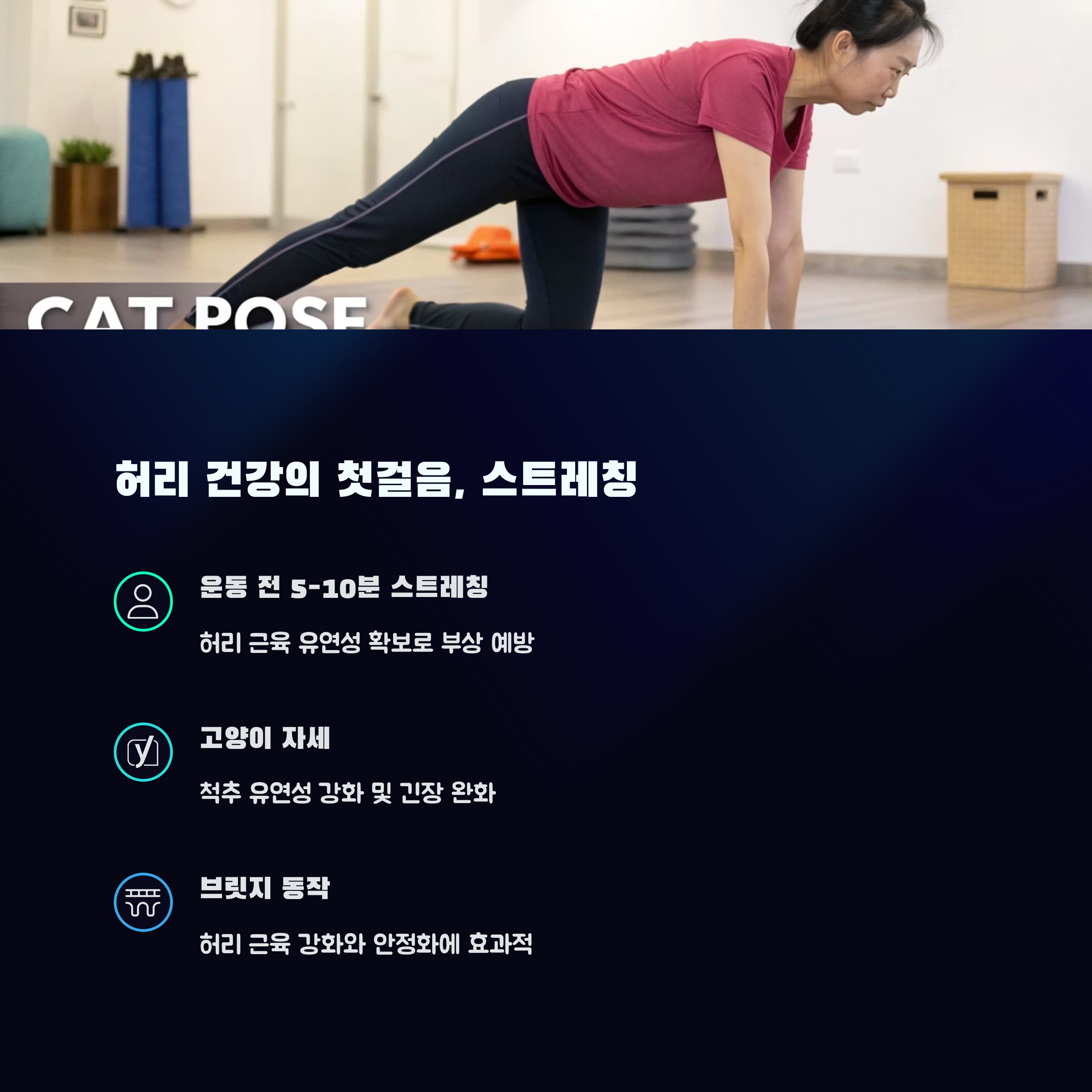 허리 통증이 있다면 무리하지 말고, 전문가의 도움을 받아 자신에게 맞는 운동과 관리를 이어가야 합니다. 건강한 허리는 삶의 질을 높여주는 중요한 자산이랍니다 😊