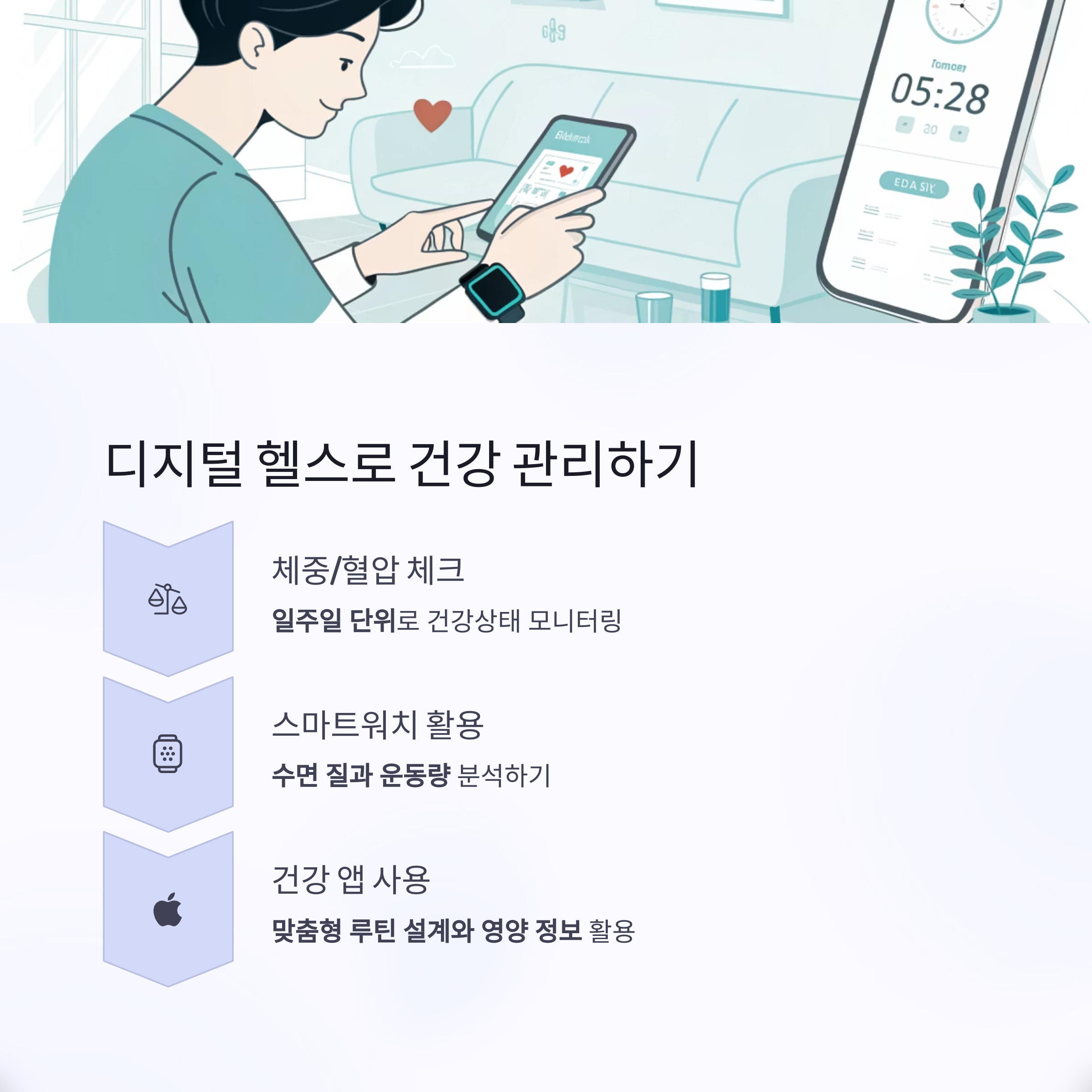 건강 앱에서는 맞춤형 루틴 설계와 영양 정보 제공을 받아