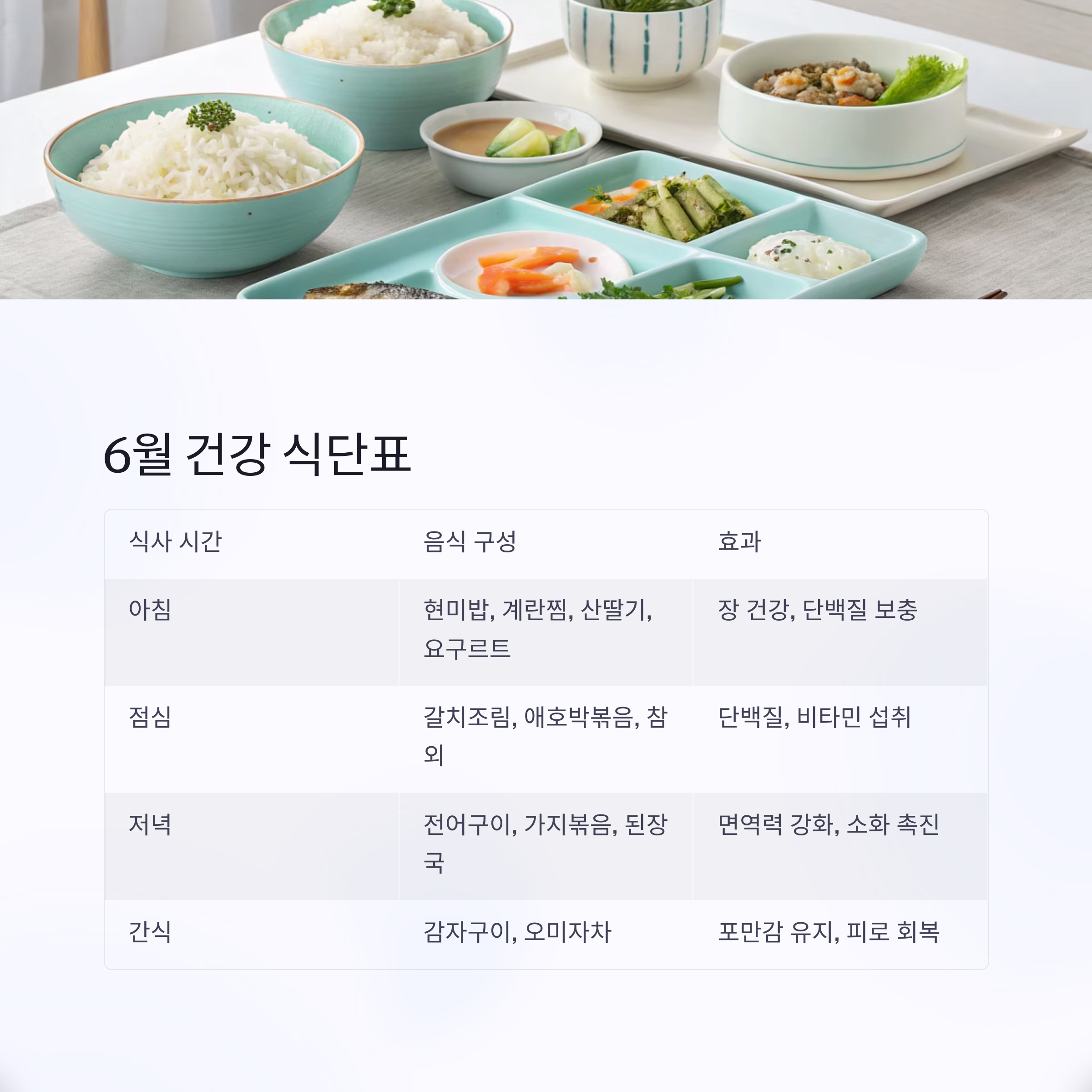 6월 추천 건강 식단표 (하루 기준)