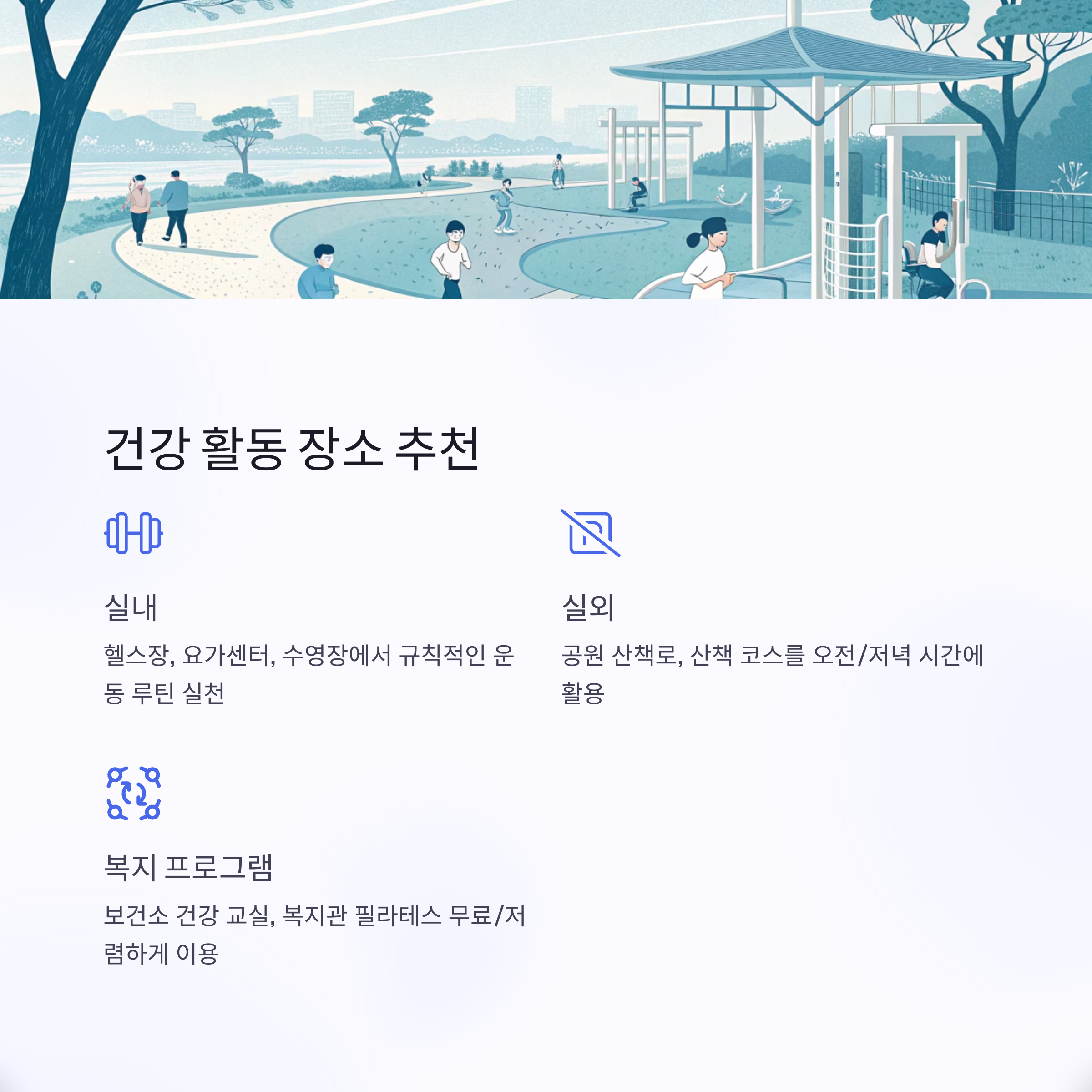 실내외 추천 운동장소 및 복지 프로그램 안내