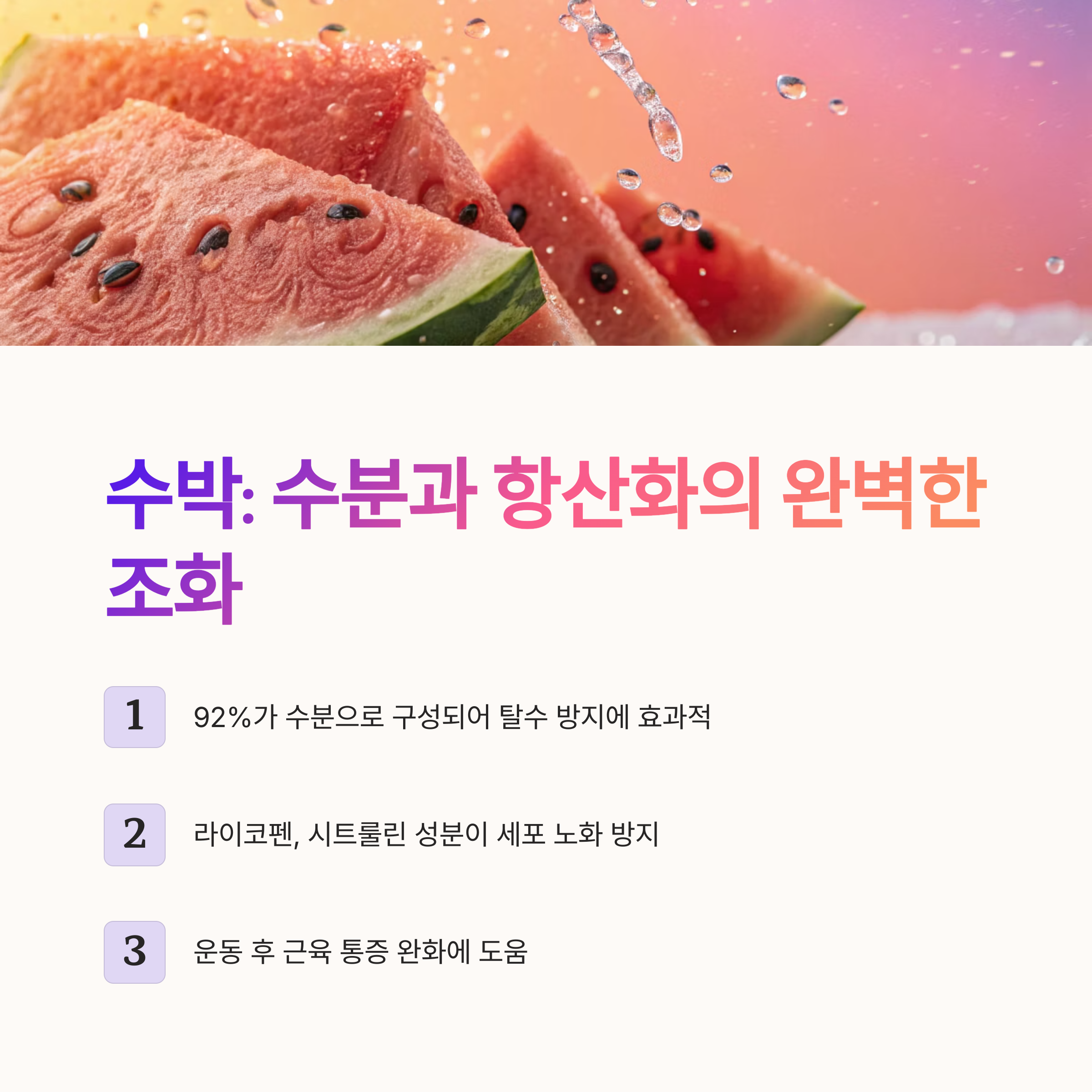 시원한 수박 주스나 껍질 무침으로 다양하게 섭취할 수 있습니다.