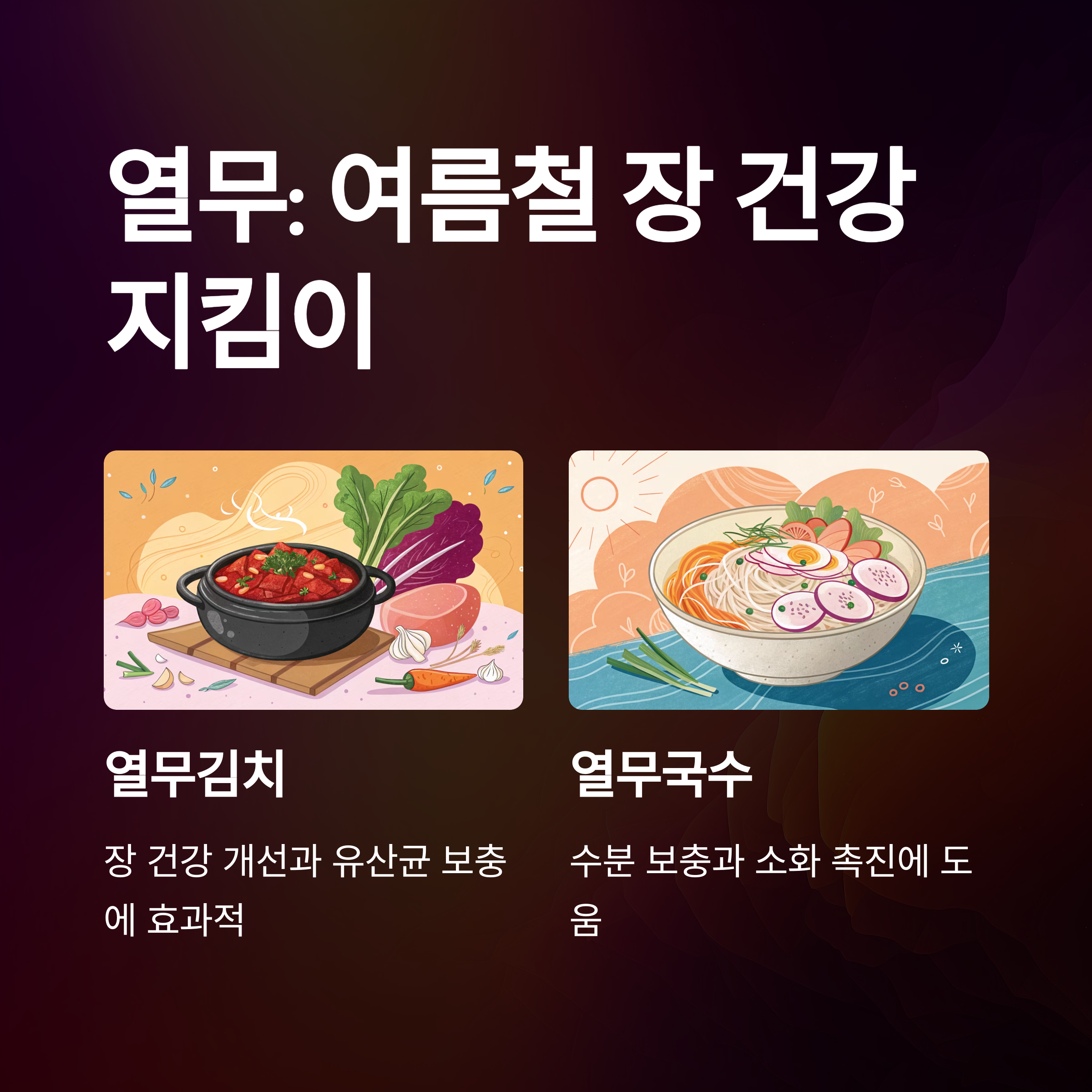 | 열무국수 | 수분 보충, 소화 촉진 |