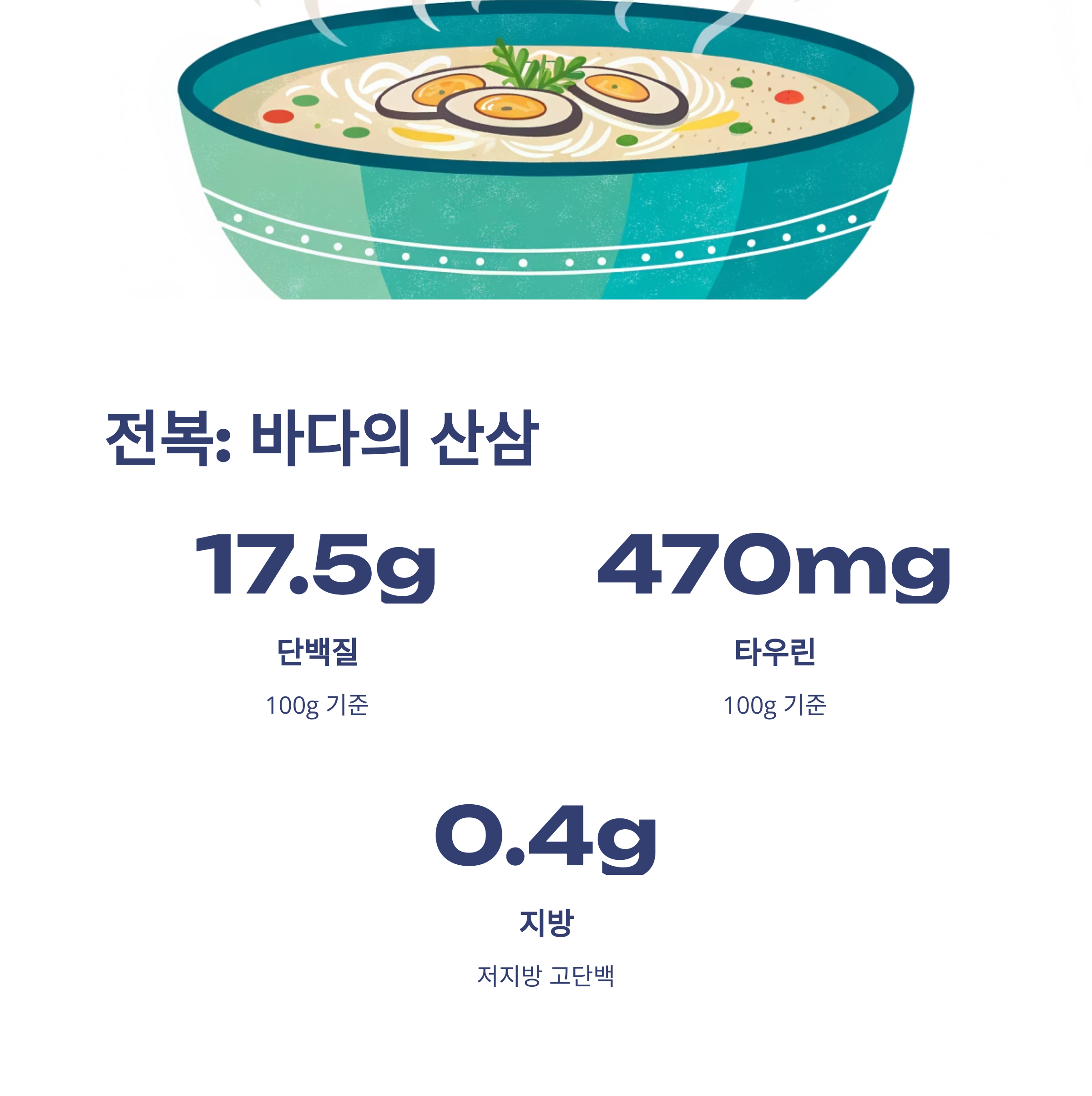 | 전복 | 타우린, 철, 아연 | 피로 회복, 면역력 강화 |