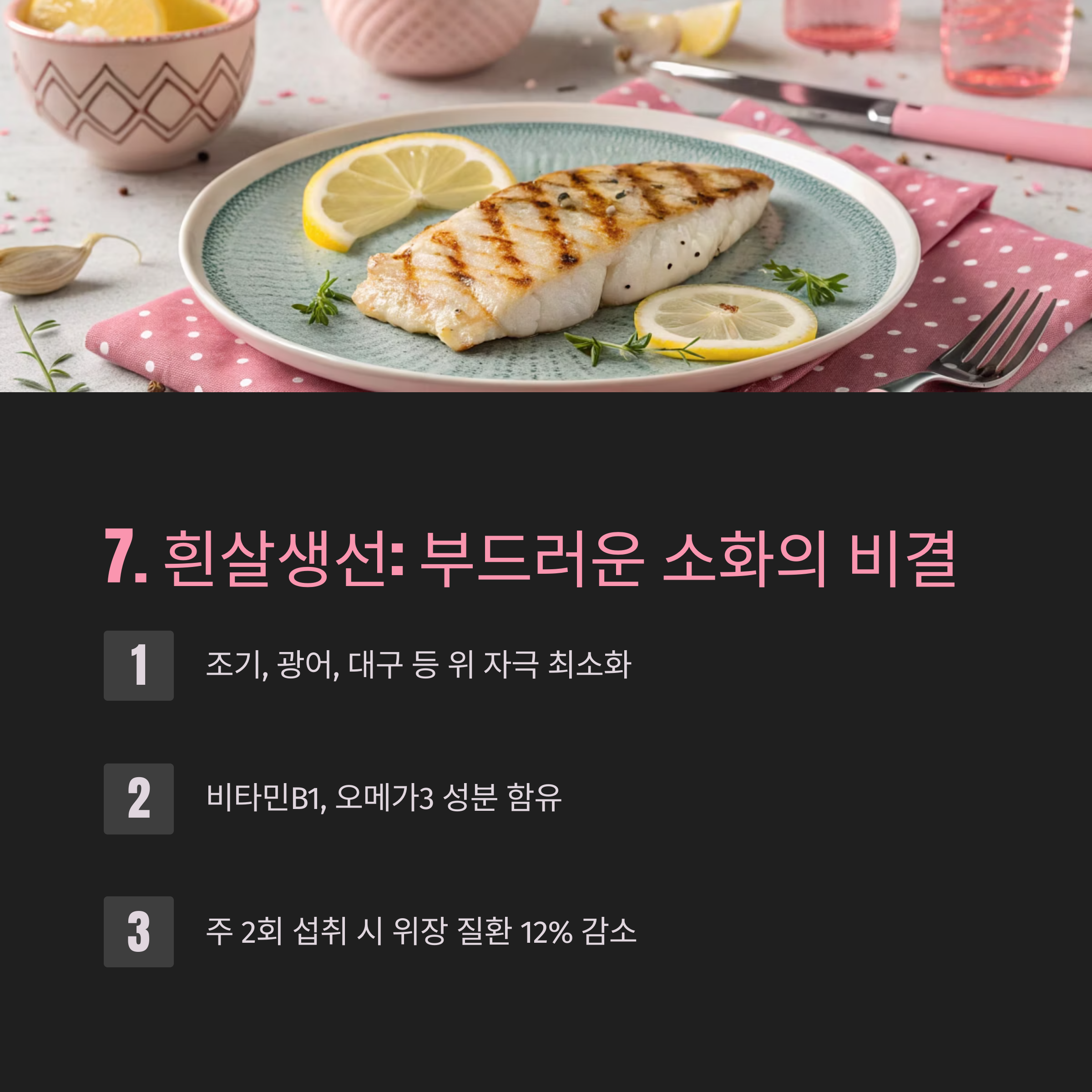 흰살생선: 부드러운 소화, 위 자극 최소화