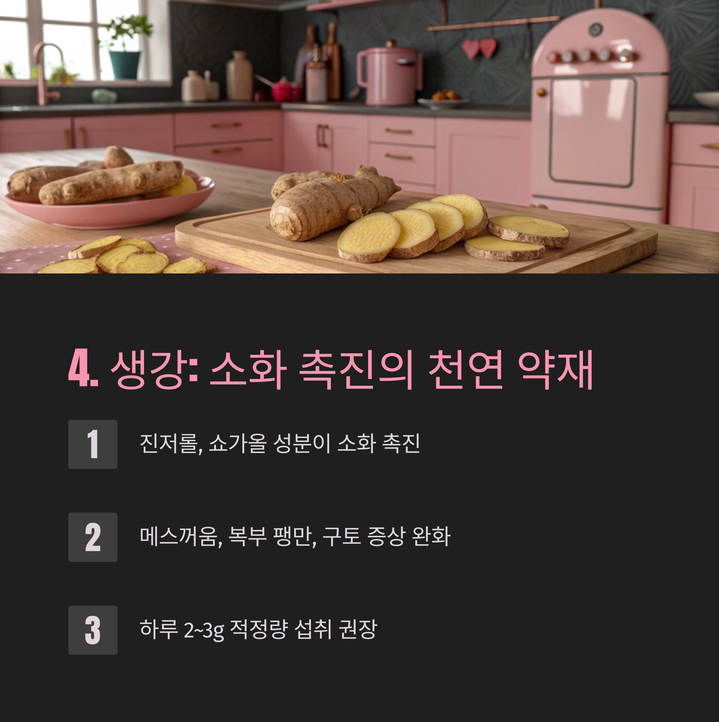진저롤과 쇼가올 성분은 소화를 촉진하고 위액 분비를 도와