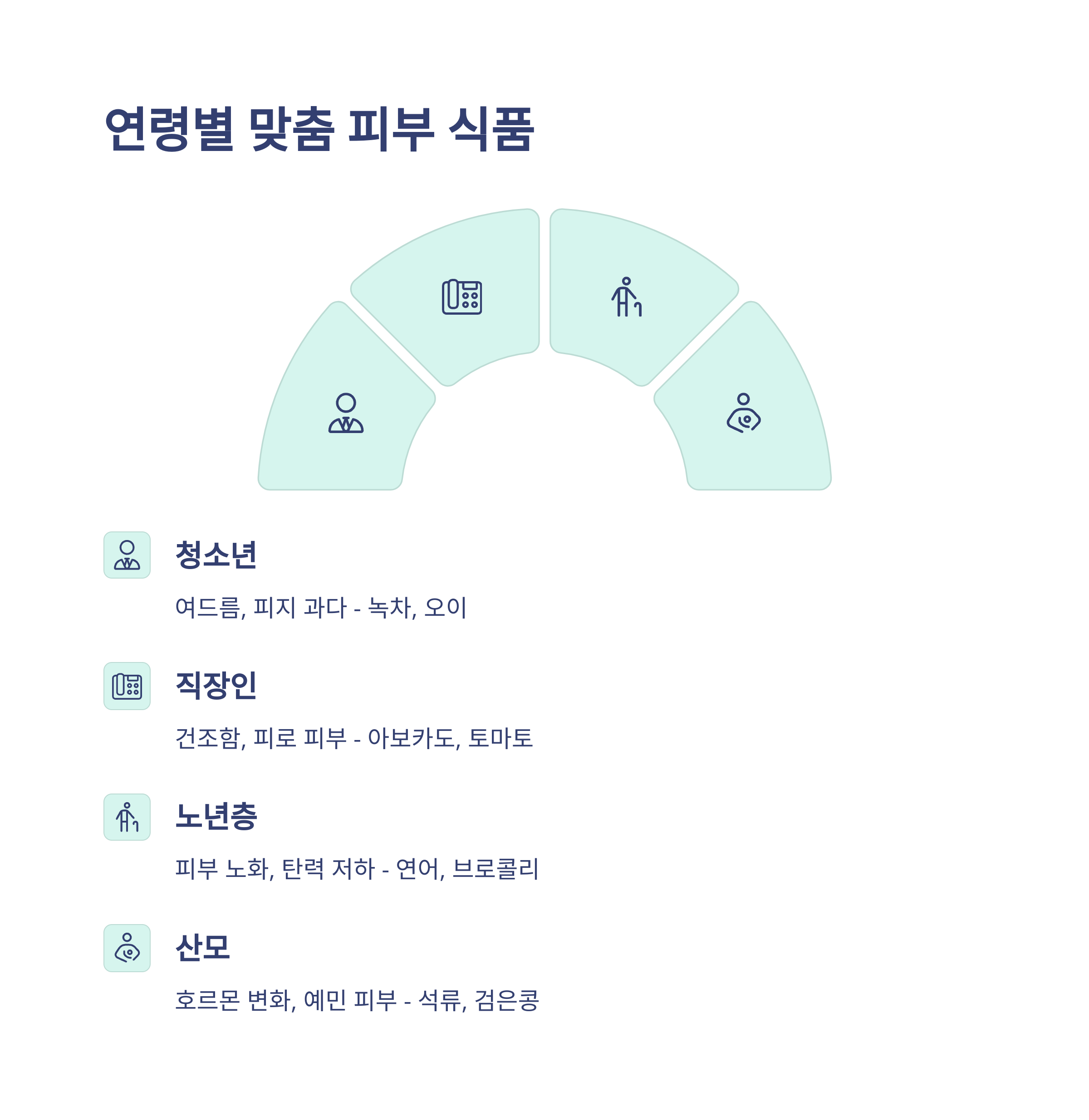 | 노년층 | 피부 노화, 탄력 저하 | 연어, 브로콜리 |