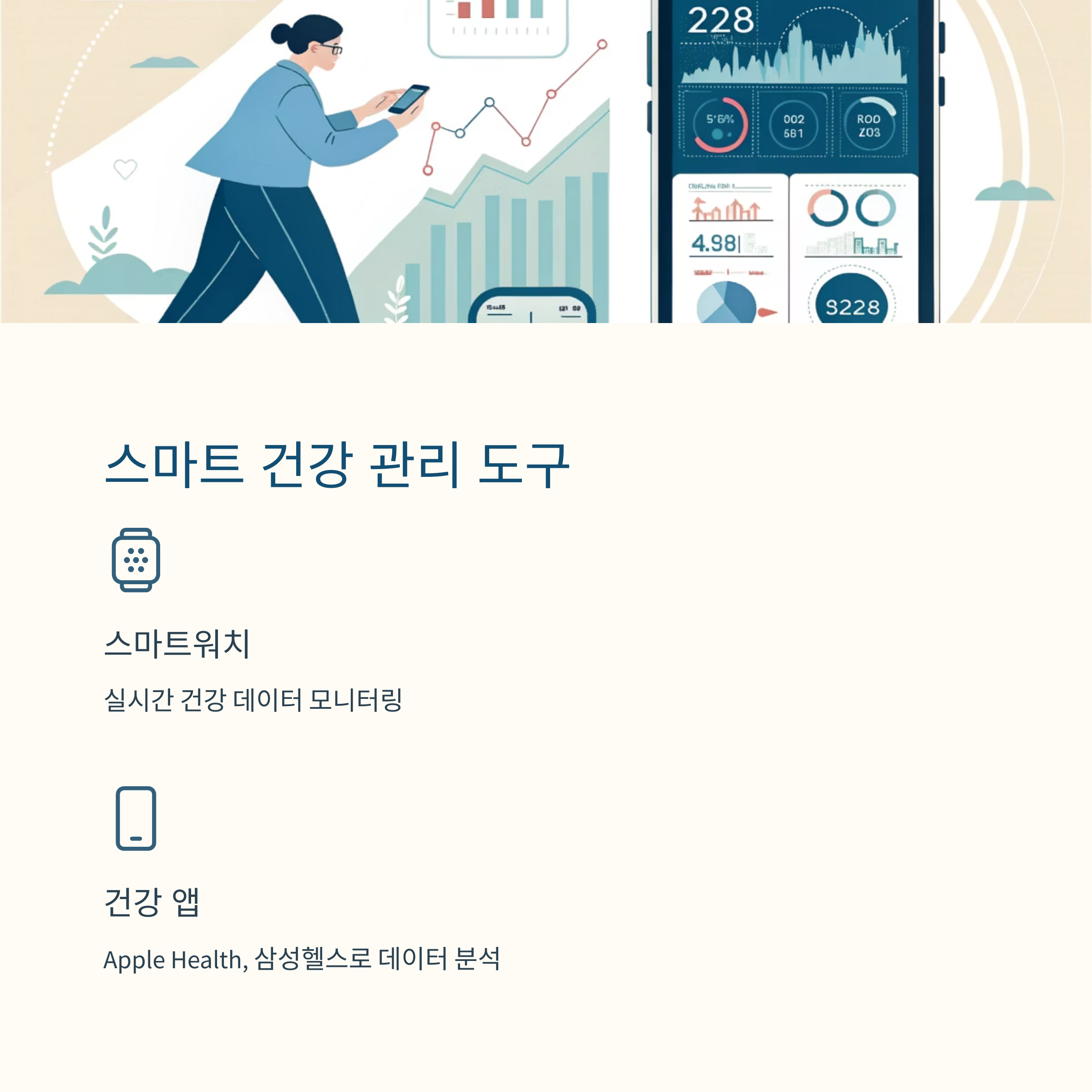 Apple Health, 삼성헬스 등 앱을 이용하면 운동량, 심박수, 수면 데이터 분석을 통해 건강 루틴을 체계적으로 구성할 수 있습니다.