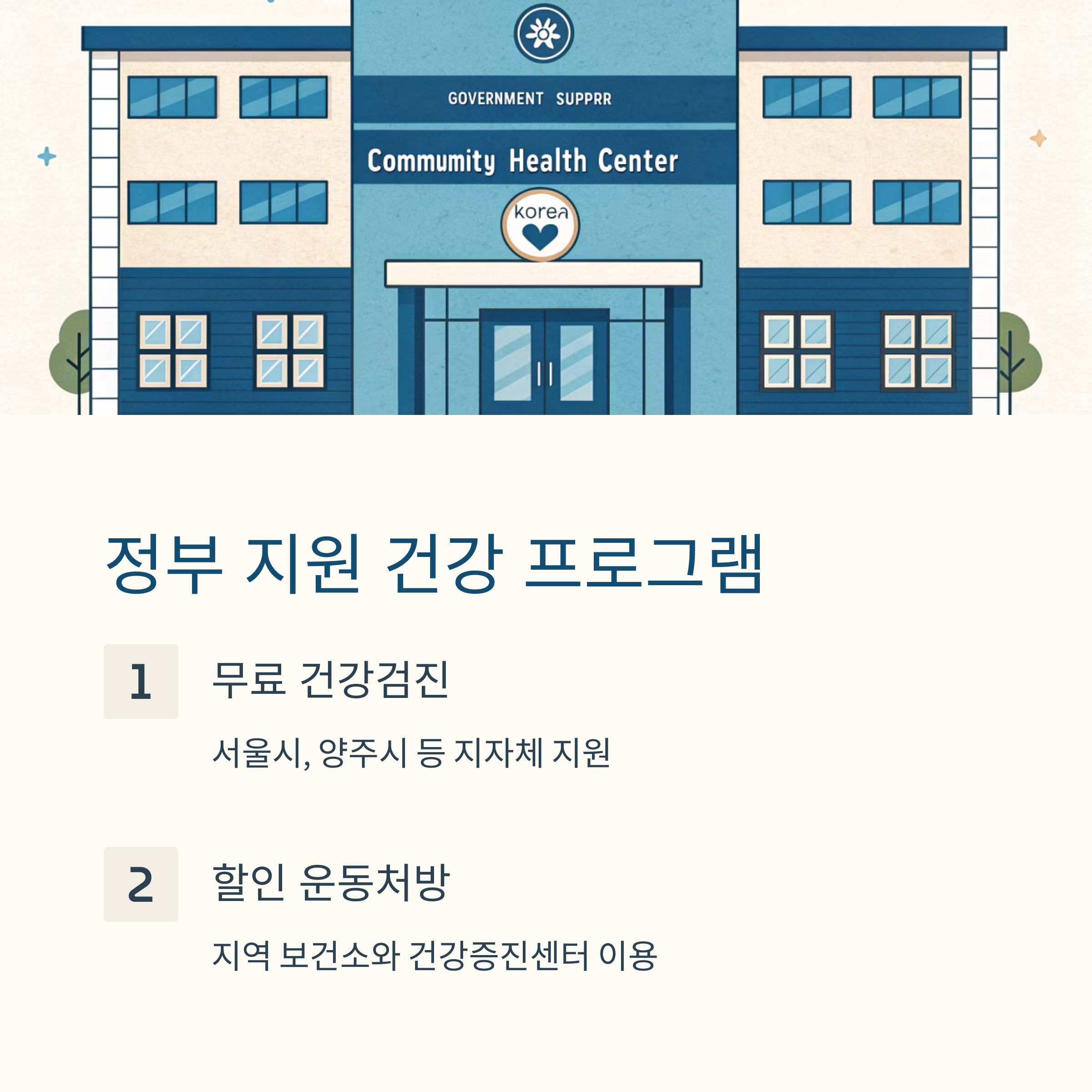서울시, 양주시 등 지자체에서 건강검진 및 건강관리 프로그램을 무료 혹은 할인 지원 중입니다. 지역 보건소와 건강증진센터를 통해 이용 가능합니다.
