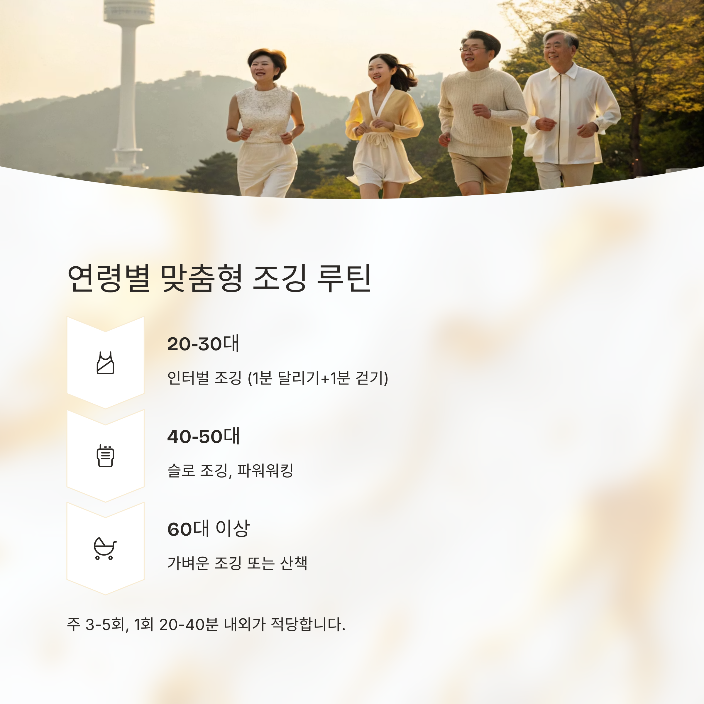 조깅은 연령대별로 운동 강도를 달리 적용하는 것이 핵심입니다.