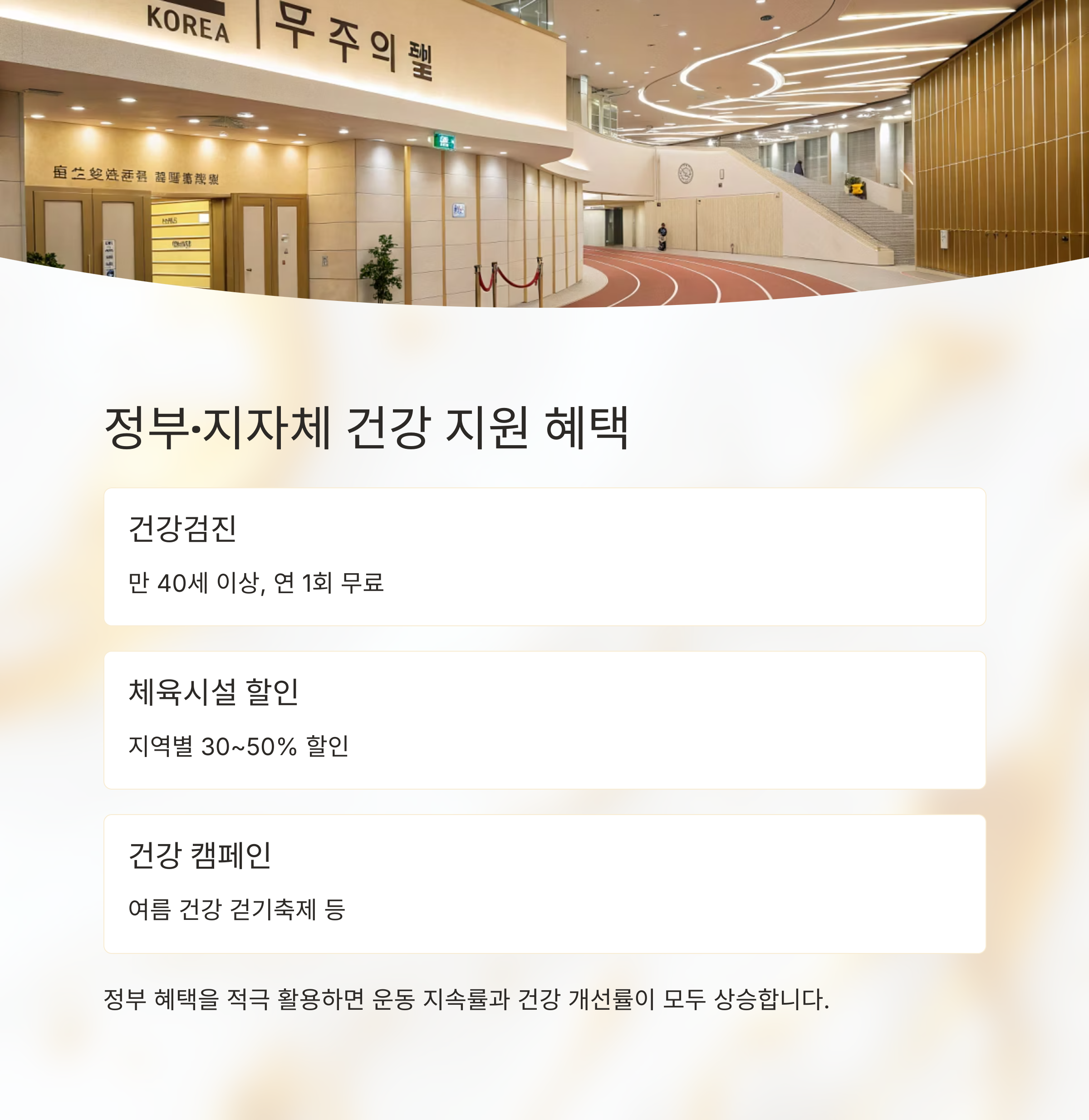 | 체육시설 할인 | 지역별 30~50% 할인 |