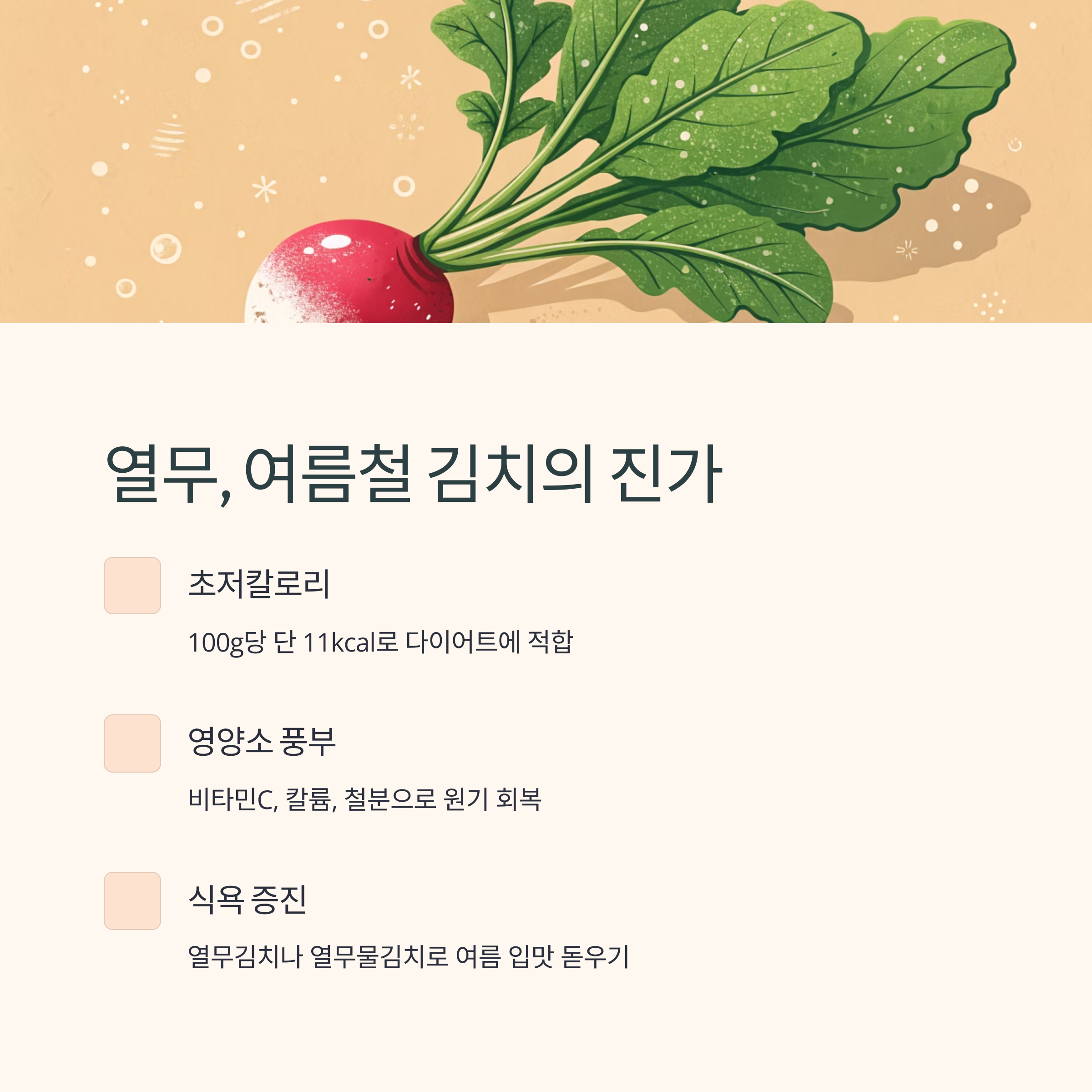 열무김치나 열무물김치로 만들어 냉장보관하면 더위 속 식욕을 돋우기에 제격입니다.