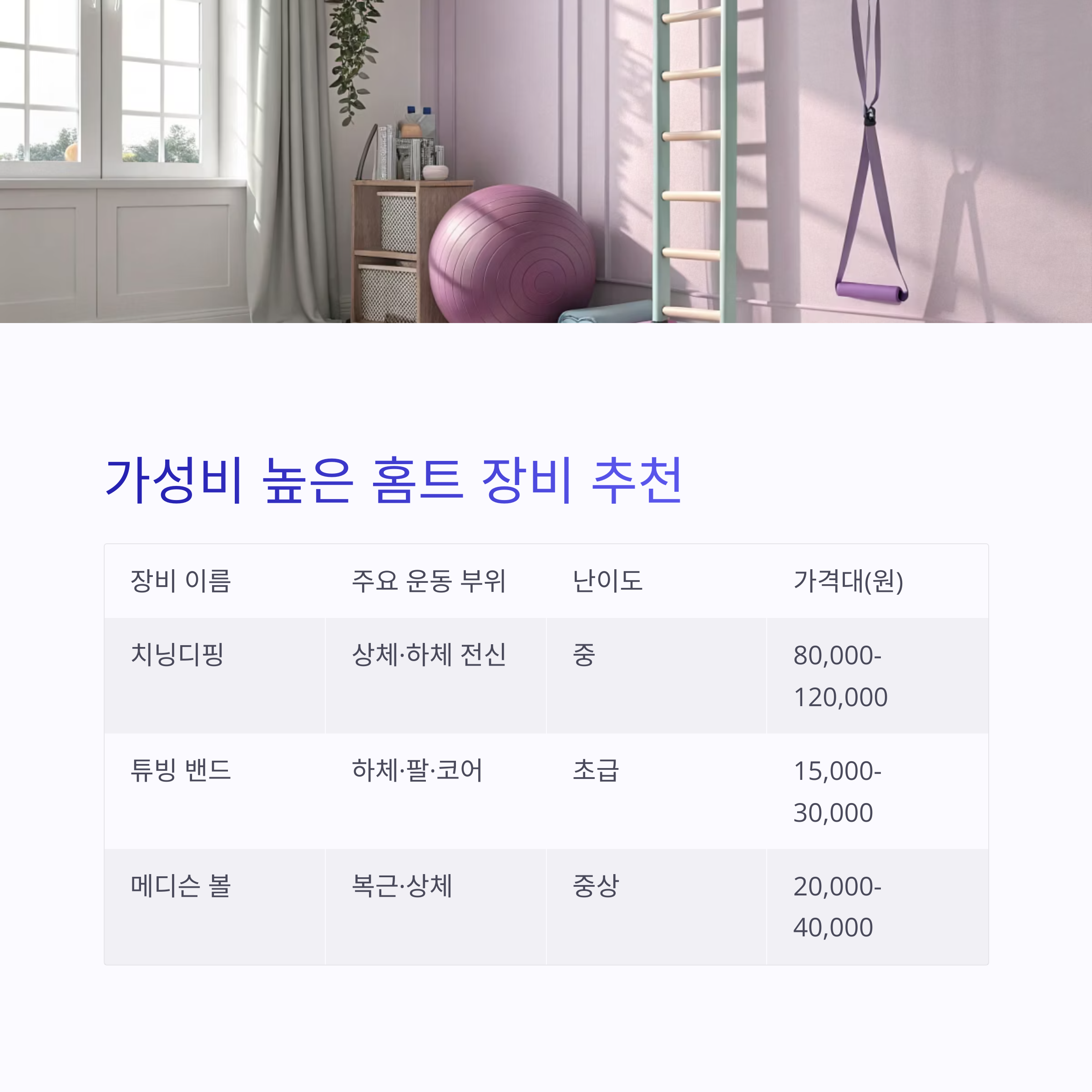 | 튜빙 밴드 | 하체·팔·코어 근육 | 초급 | 15,000~30,000 |