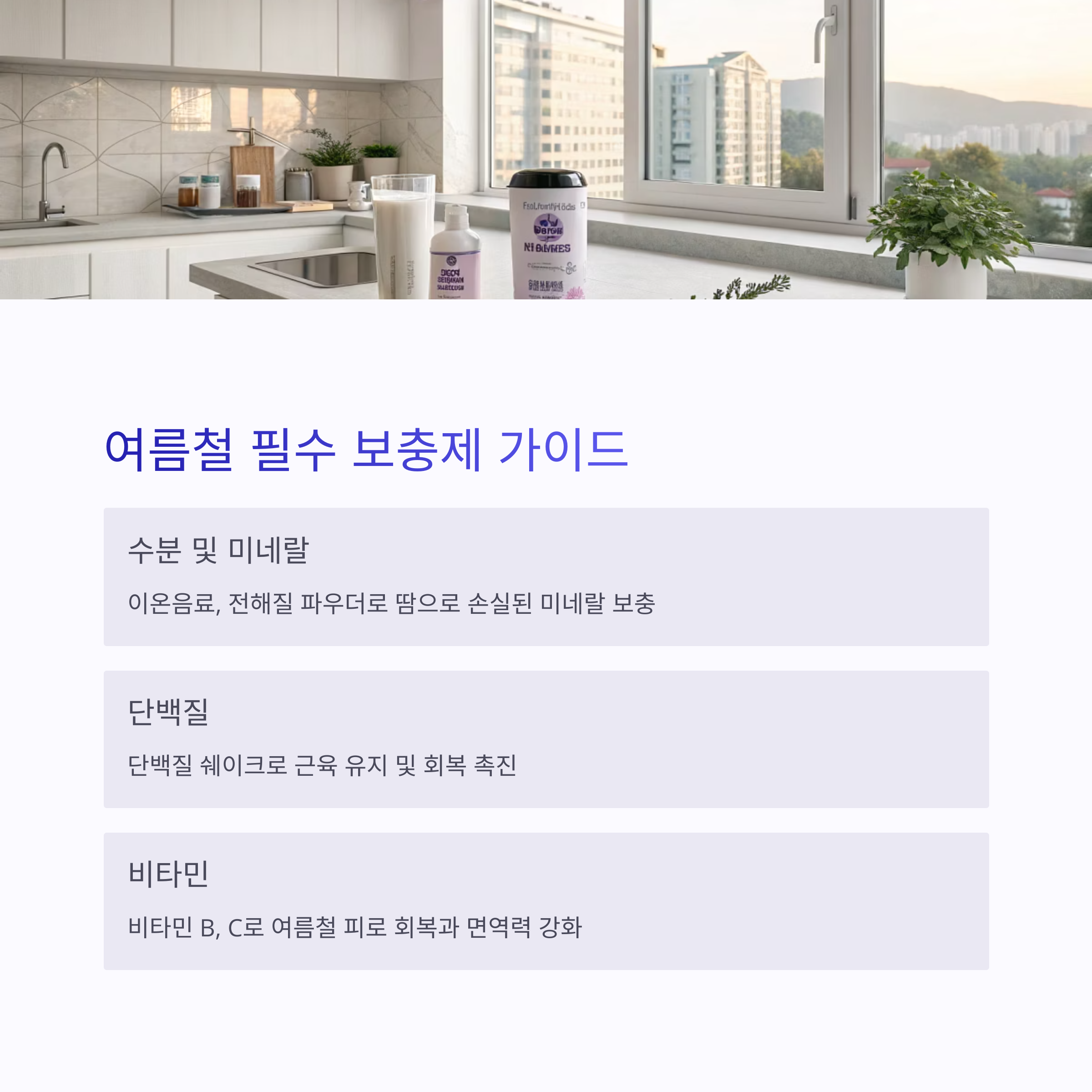 수분과 전해질 보충, 식단 균형 조절, 가벼운 홈트를 통해