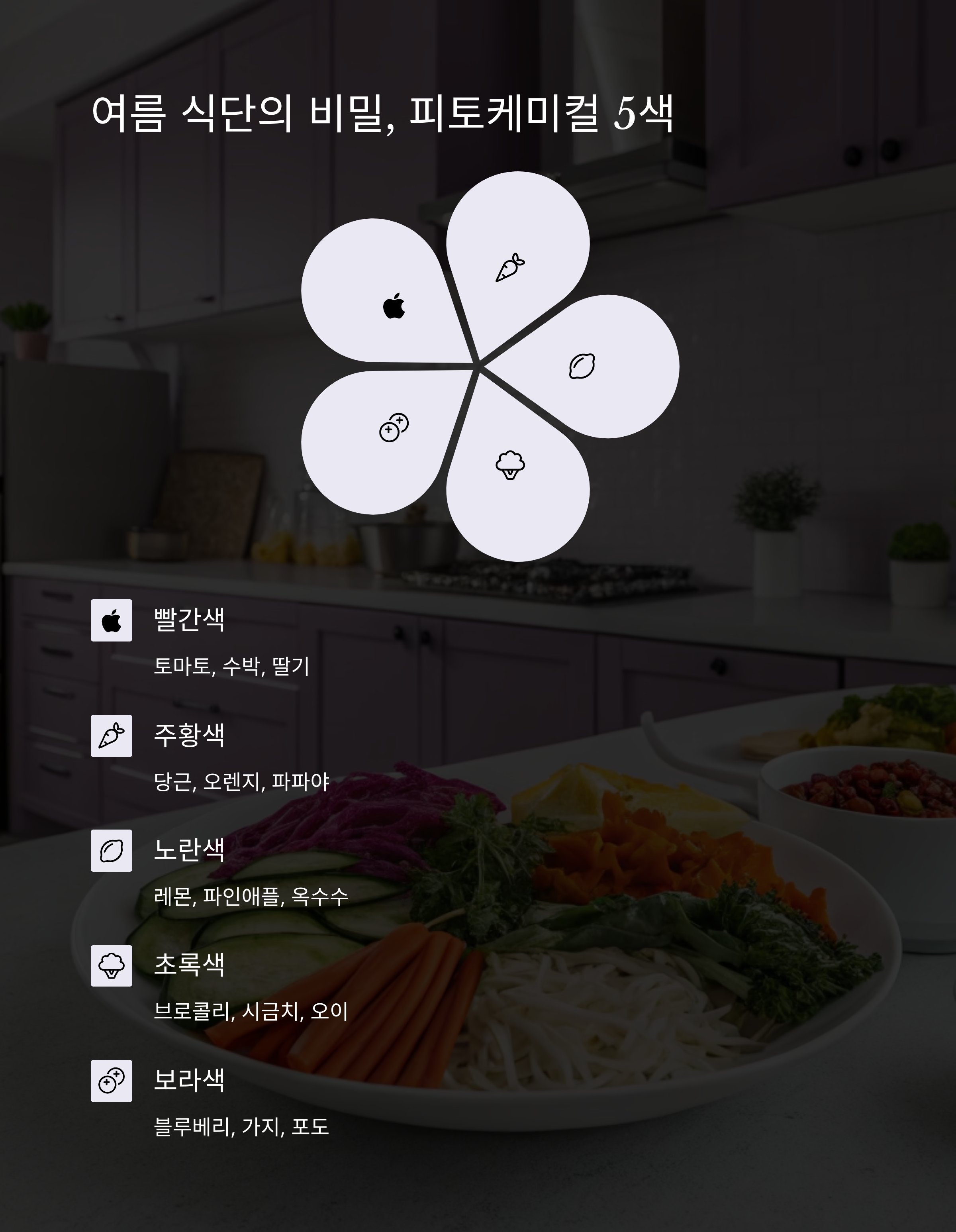 **'피토케미컬 5색 식단'**이 트렌드입니다.