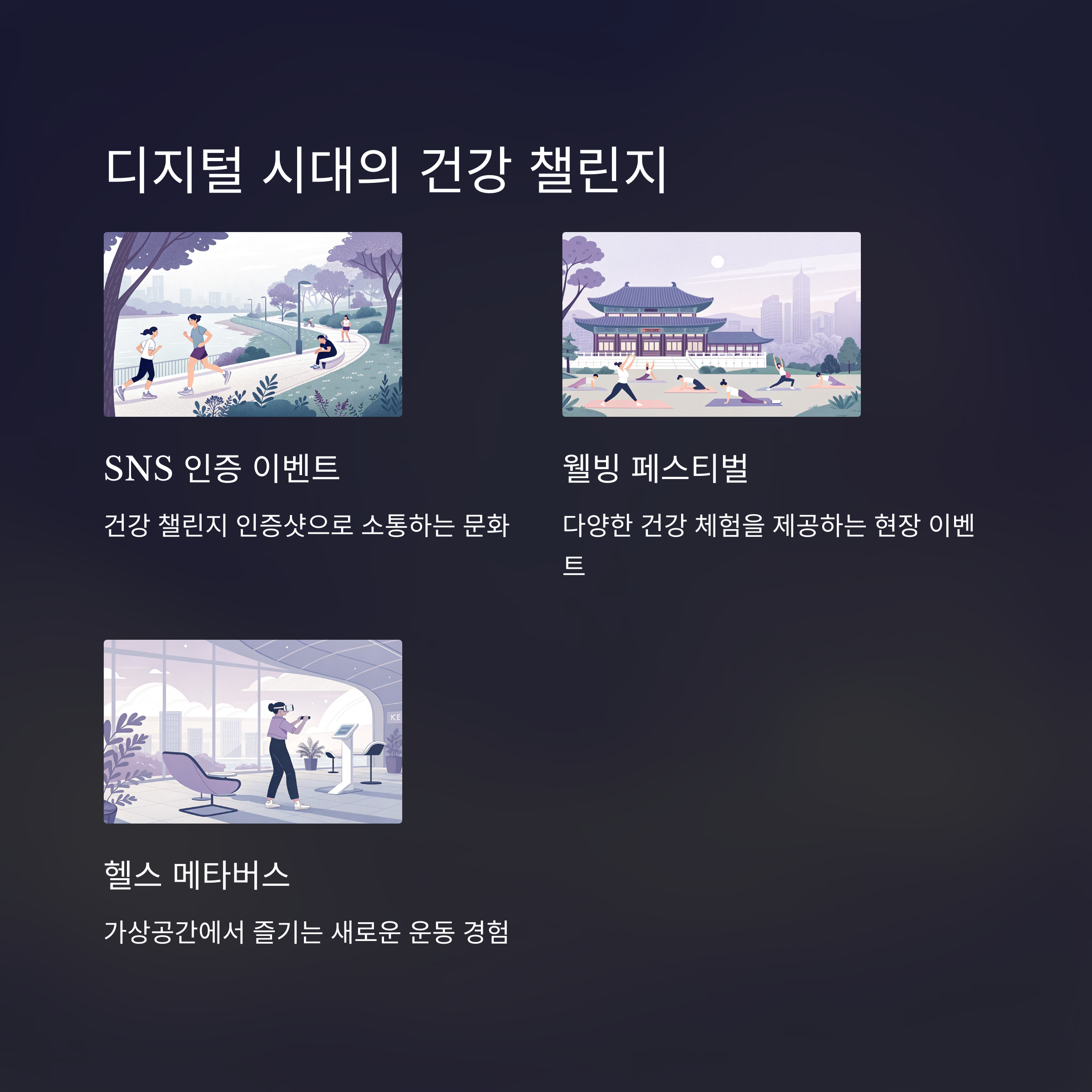 챌린지 인증샷, 웰빙 페스티벌, 헬스 메타버스 공간 등