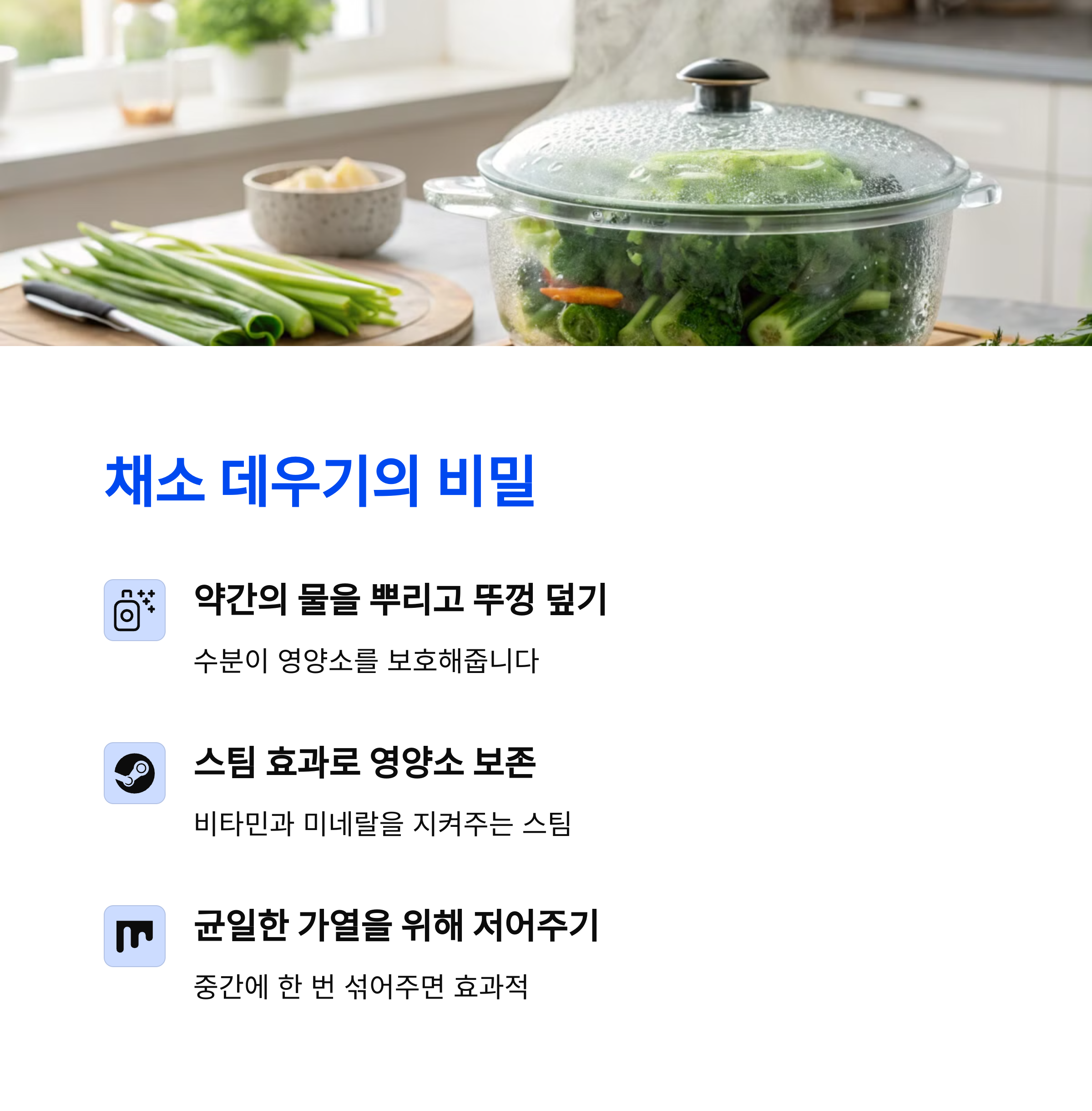 "채소를 데울 때 스팀 기능을 사용해봤는데, 확실히 색도 선명하고 맛도 신선해요. 특히 브로콜리는 이 방법으로 데우니까 아이들도 잘 먹더라고요."