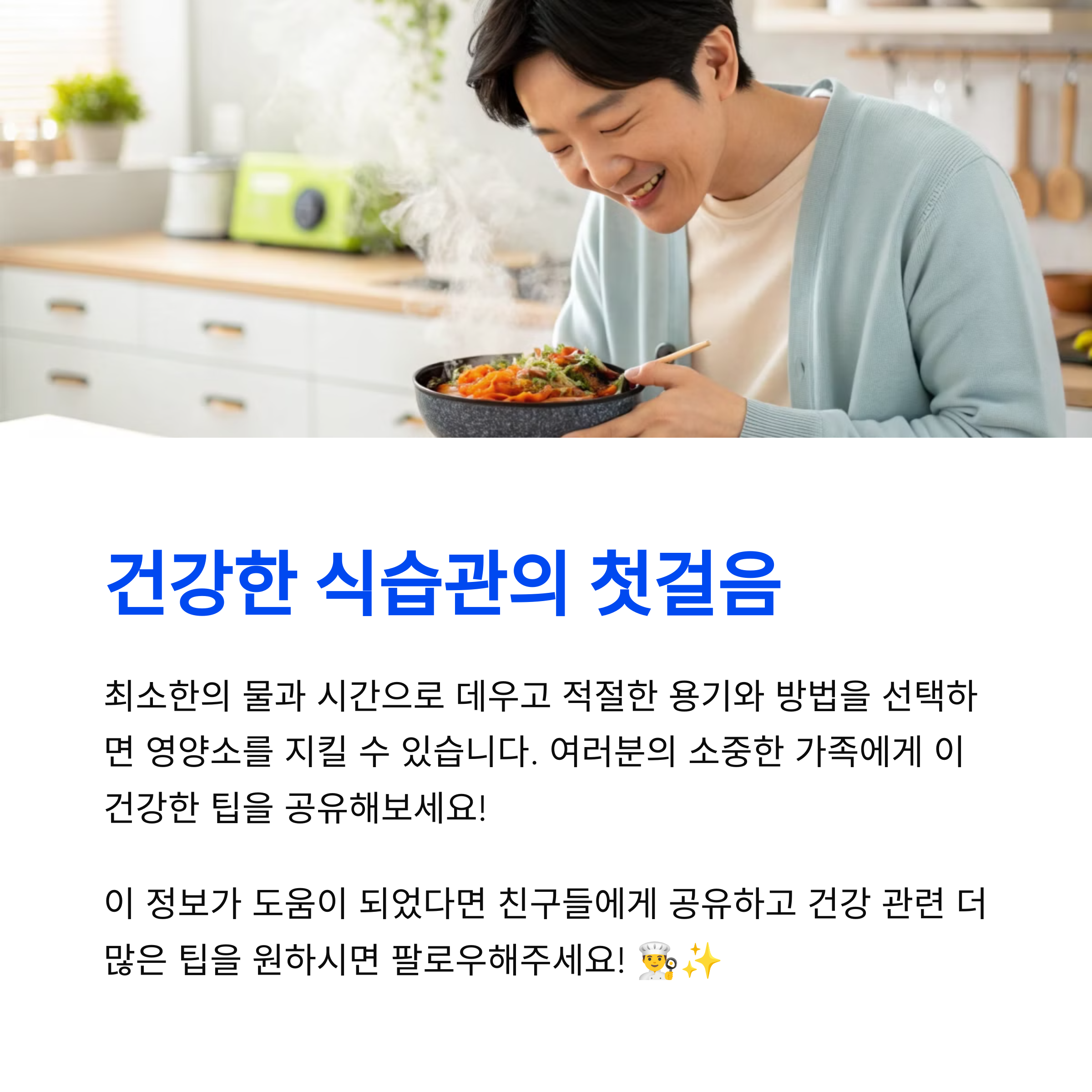 - 비타민 C와 B군: 열에 약하지만 전자레인지의 짧은 조리 시간 덕에 손실이 적습니다.