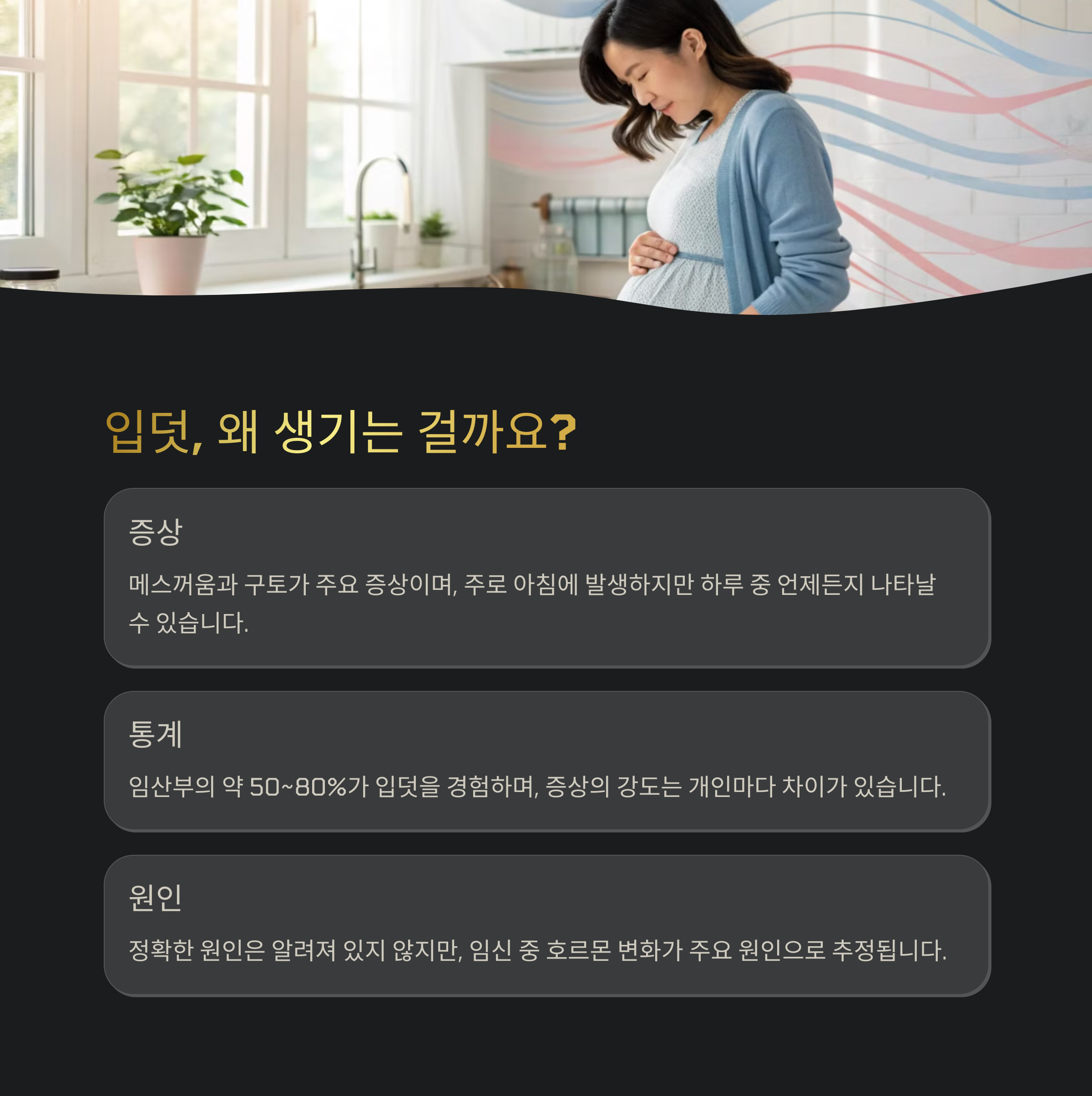 입덧은 임신 초기 여성들이 가장 먼저 마주하는 변화입니다. 증상의 강도와 지속 기간은 개인차가 크지만, 이를 이해하고 대비하는 것만으로도 큰 도움이 됩니다. 2025년부터는 건강 지원 제도가 확대되어 많은 분들이 실질적인 도움을 받을 수 있습니다. 스스로에 대한 관심과 관리가 무엇보다 중요하며, 가족의 이해와 배려도 함께 이루어져야 건강한 출산을 맞이할 수 있습니다. 지금의 불편함은 곧 새로운 생명의 시작이자, 더 큰 사랑으로 이어지는 과정임을 기억해주세요.