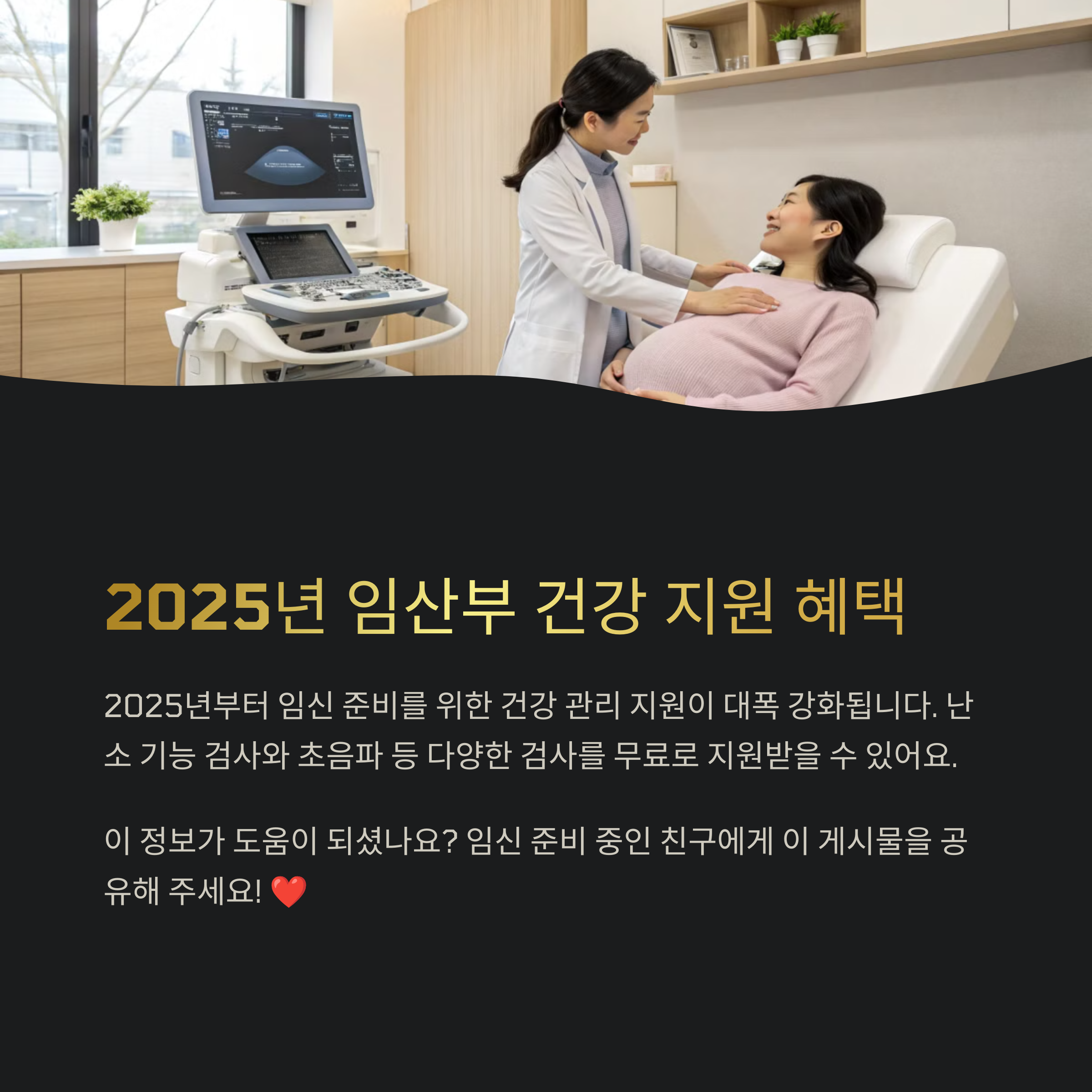 | 건강 지원 제도 | 2025년부터 다양한 임신 사전 검사 지원이 시작됩니다. |