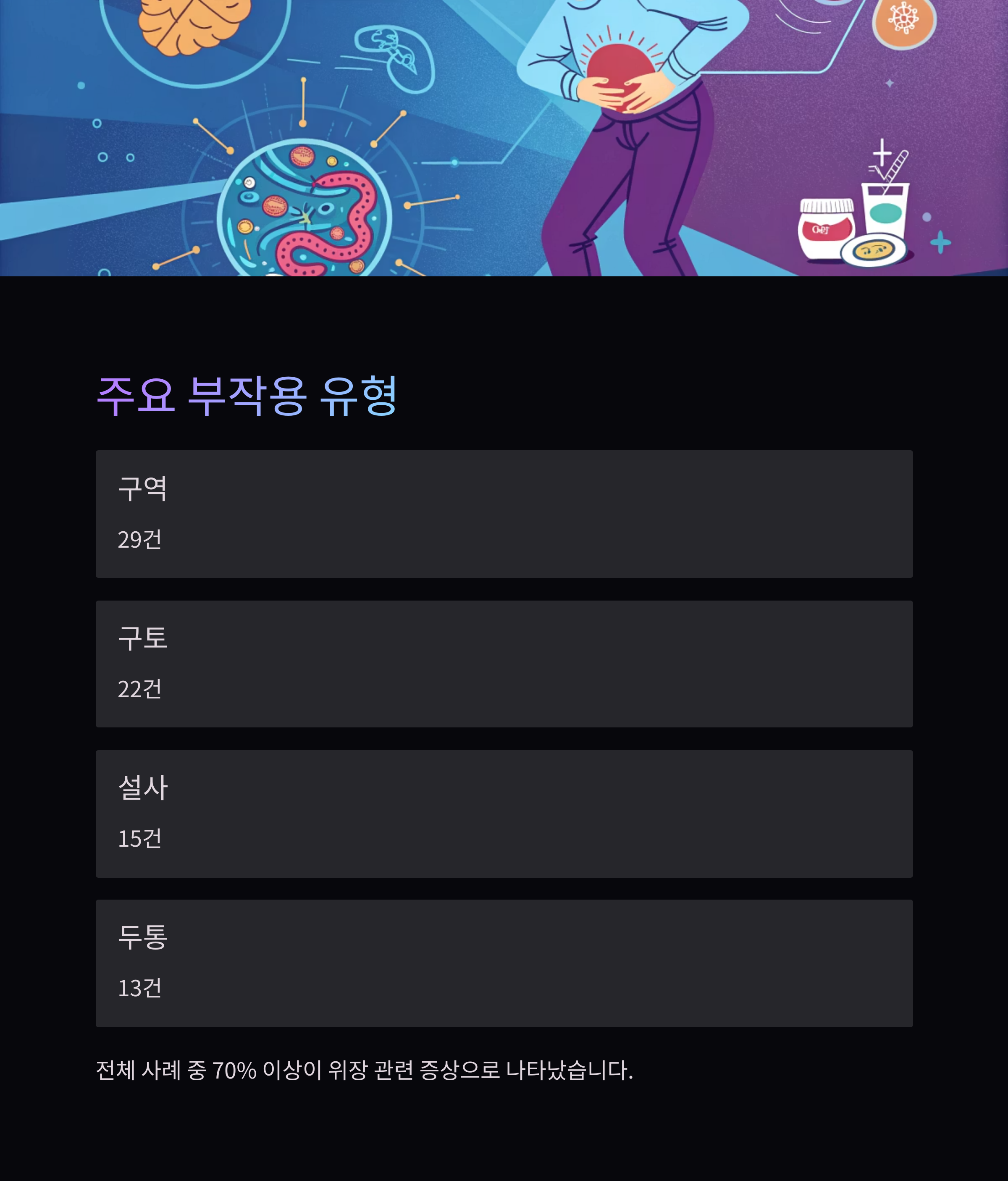 전체 사례 중 70% 이상이 위장 관련 증상으로,