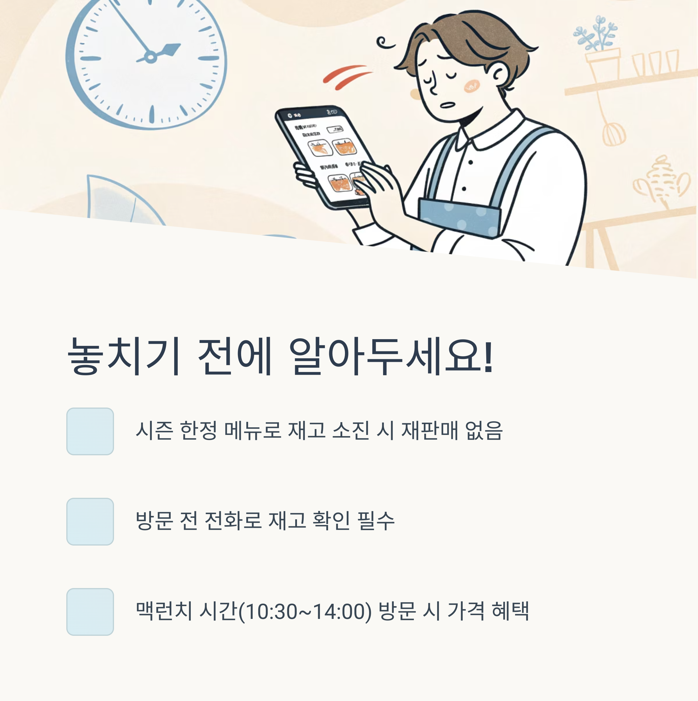 모바일 앱이나 배달 플랫폼을 이용할 경우 재고 유무와 가격을 꼭 확인해야 합니다.