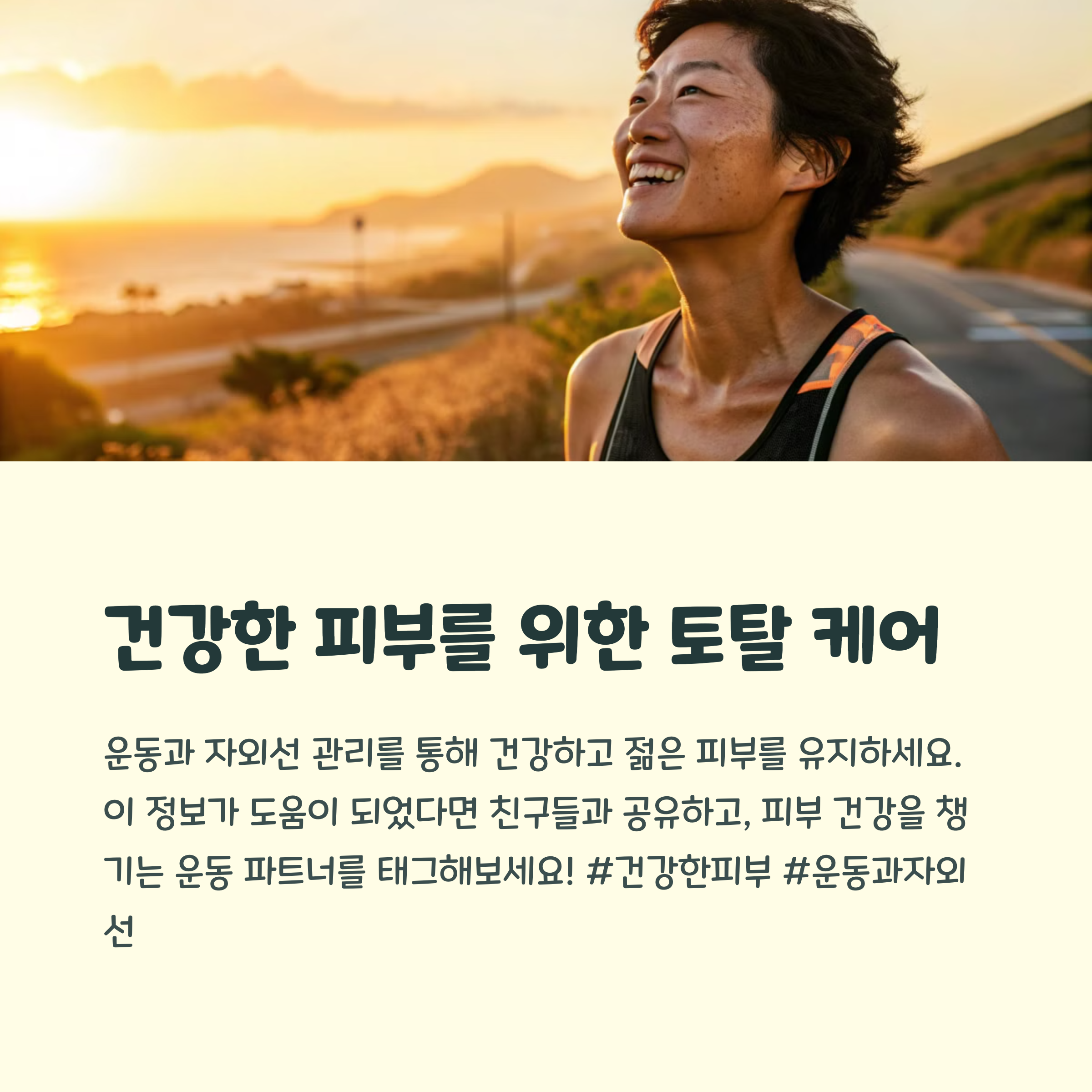 하지만 걱정 마세요! 오늘은 자외선 강한 날에도 건강하게 운동을 즐기면서 피부를 보호할 수 있는 꿀팁들을 알려드릴게요. 자외선 차단과 운동 전후 피부관리만 제대로 한다면, 건강한 몸과 빛나는 피부를 동시에 가질 수 있답니다.