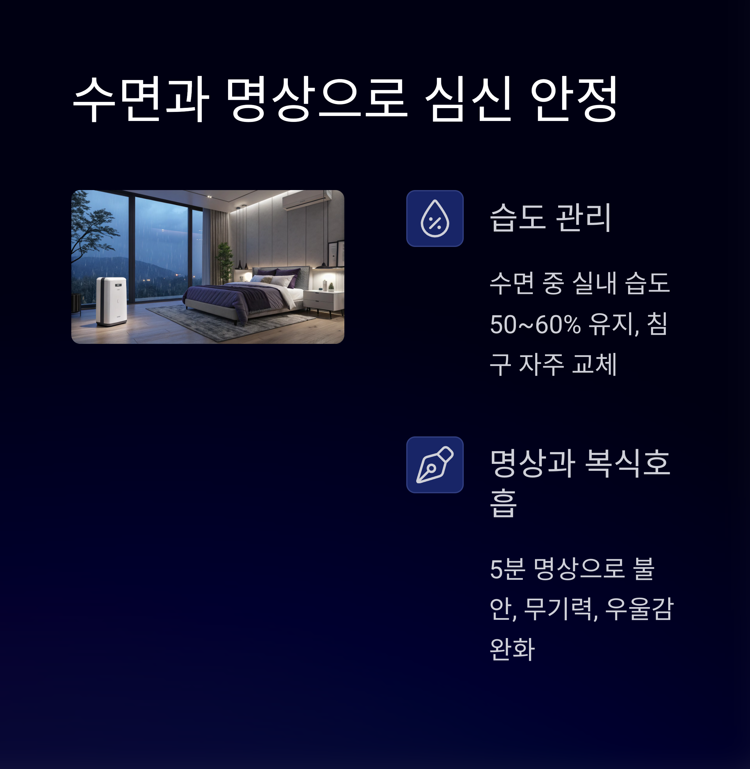 수면 중에도 실내 습도를 50~60%로 유지하면 쾌적함을 유지할 수 있습니다.