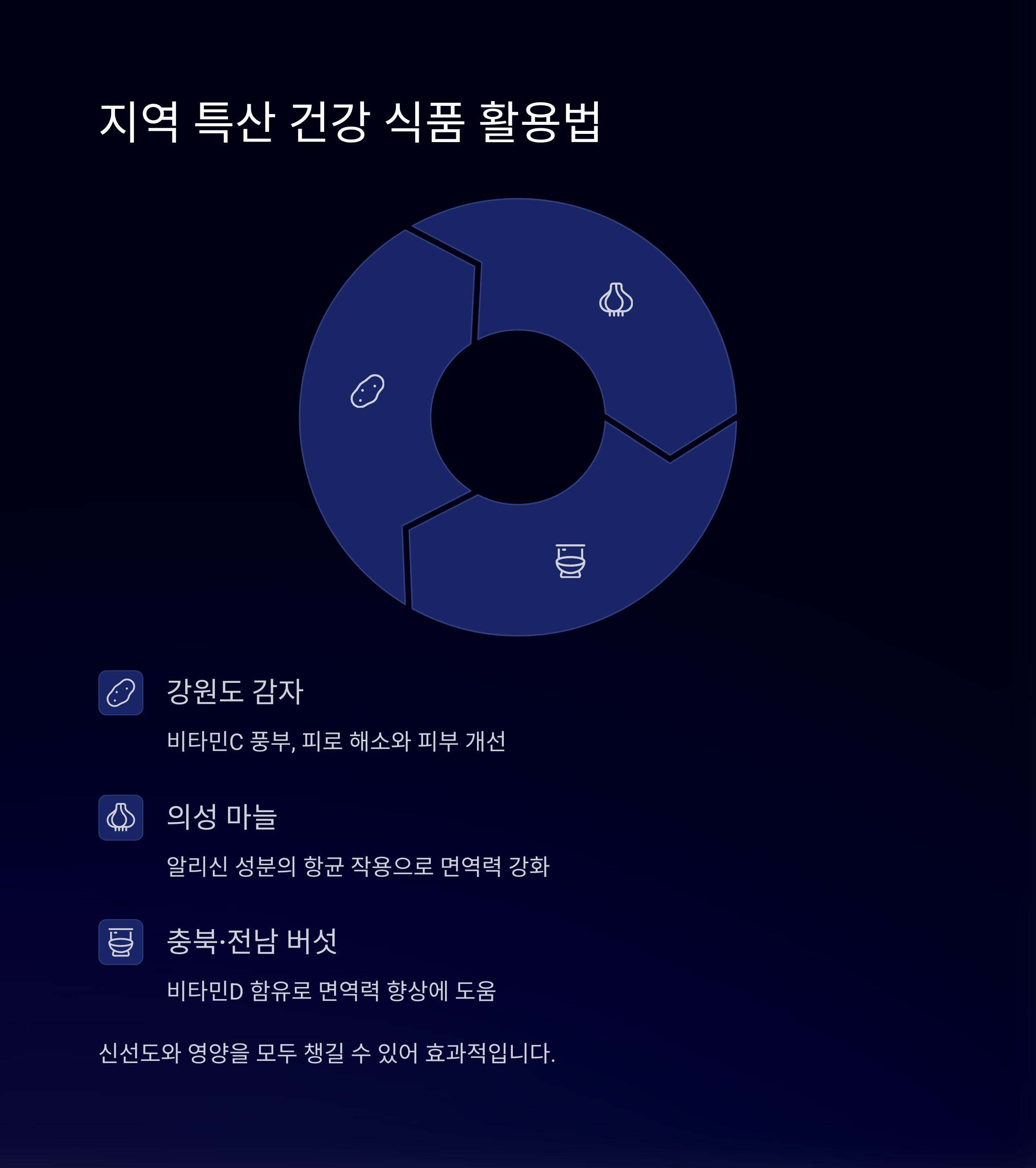 감자(강원도), 마늘(의성), 버섯(충북·전남) 등