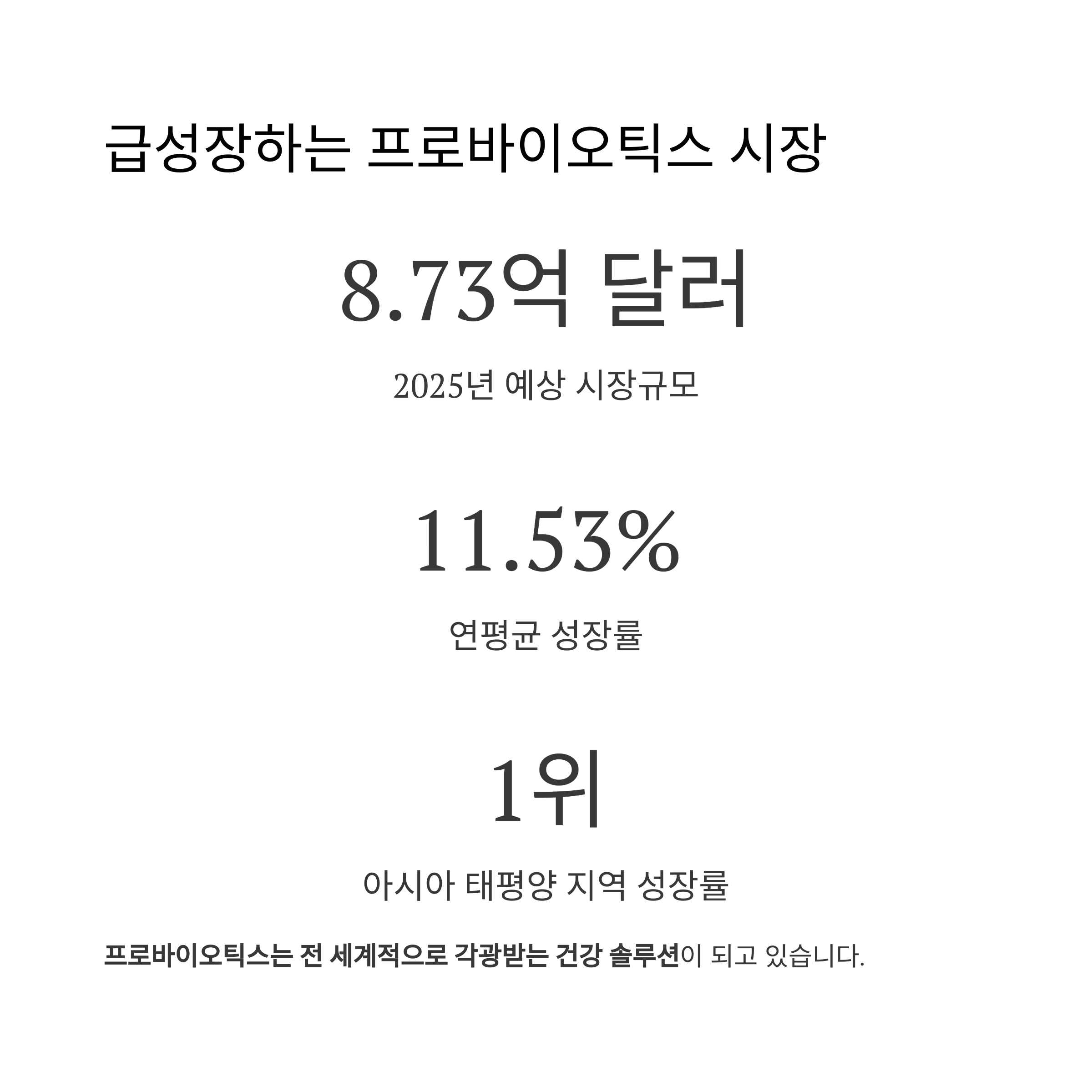 이처럼 프로바이오틱스는 전 세계적으로 각광받는 건강 솔루션이 되고 있습니다.