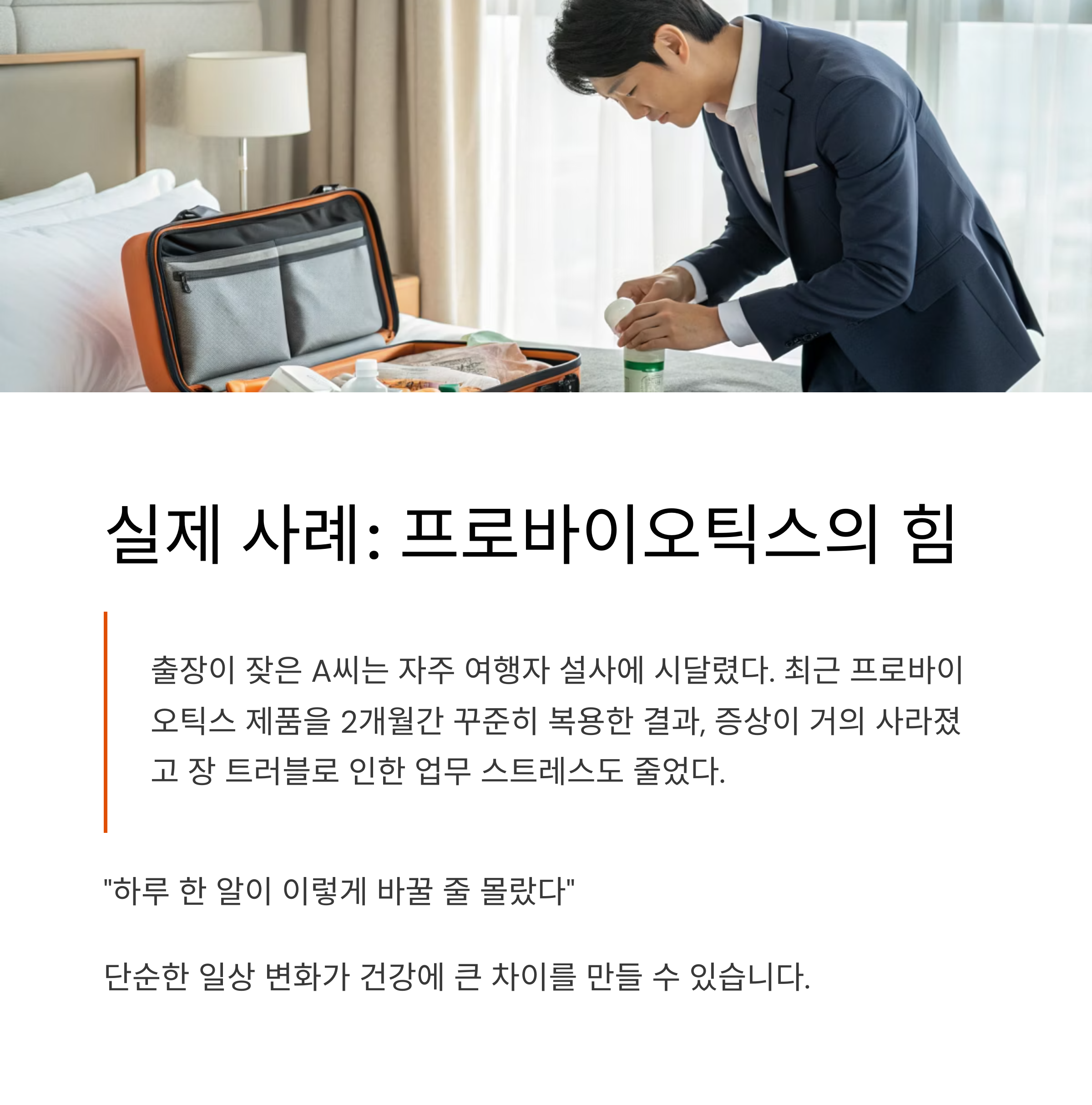 최근 프로바이오틱스 제품을 2개월간 꾸준히 복용한 결과, 증상이 거의 사라졌고