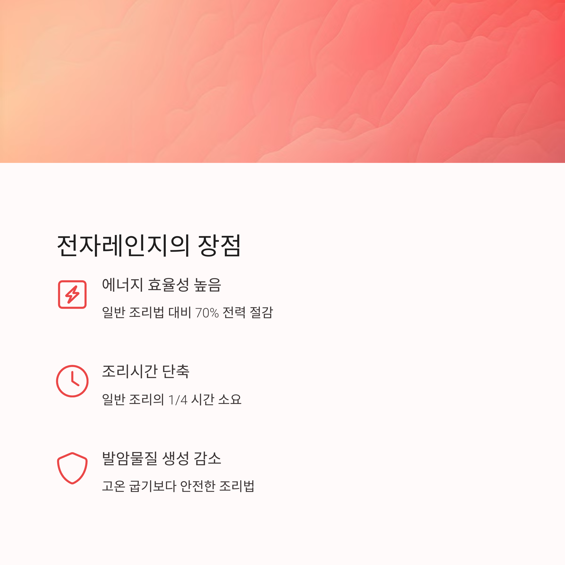 다만, 플라스틱 용기 사용, 과열 폭발, 위생 관리 소홀 등 잘못된 사용법은 건강에 위험을 초래할 수 있으니 주의가 필요합니다. 전자레인지를 올바르게 사용한다면, 시간을 절약하고 영양소를 보존하며 발암물질 생성도 줄일 수 있는 유용한 주방 가전입니다.