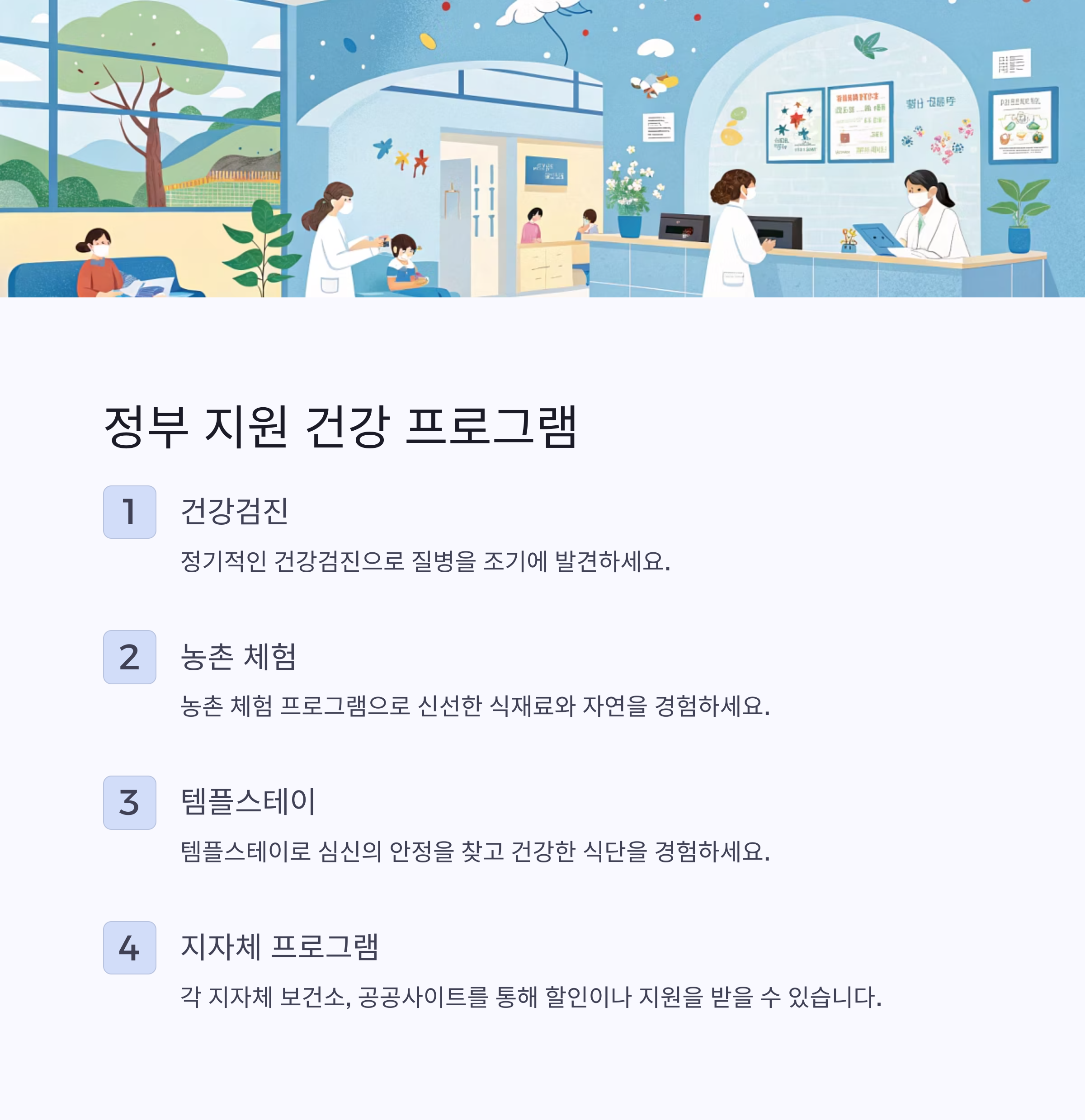 정부는 건강검진, 농촌 체험 프로그램, 템플스테이 등을
