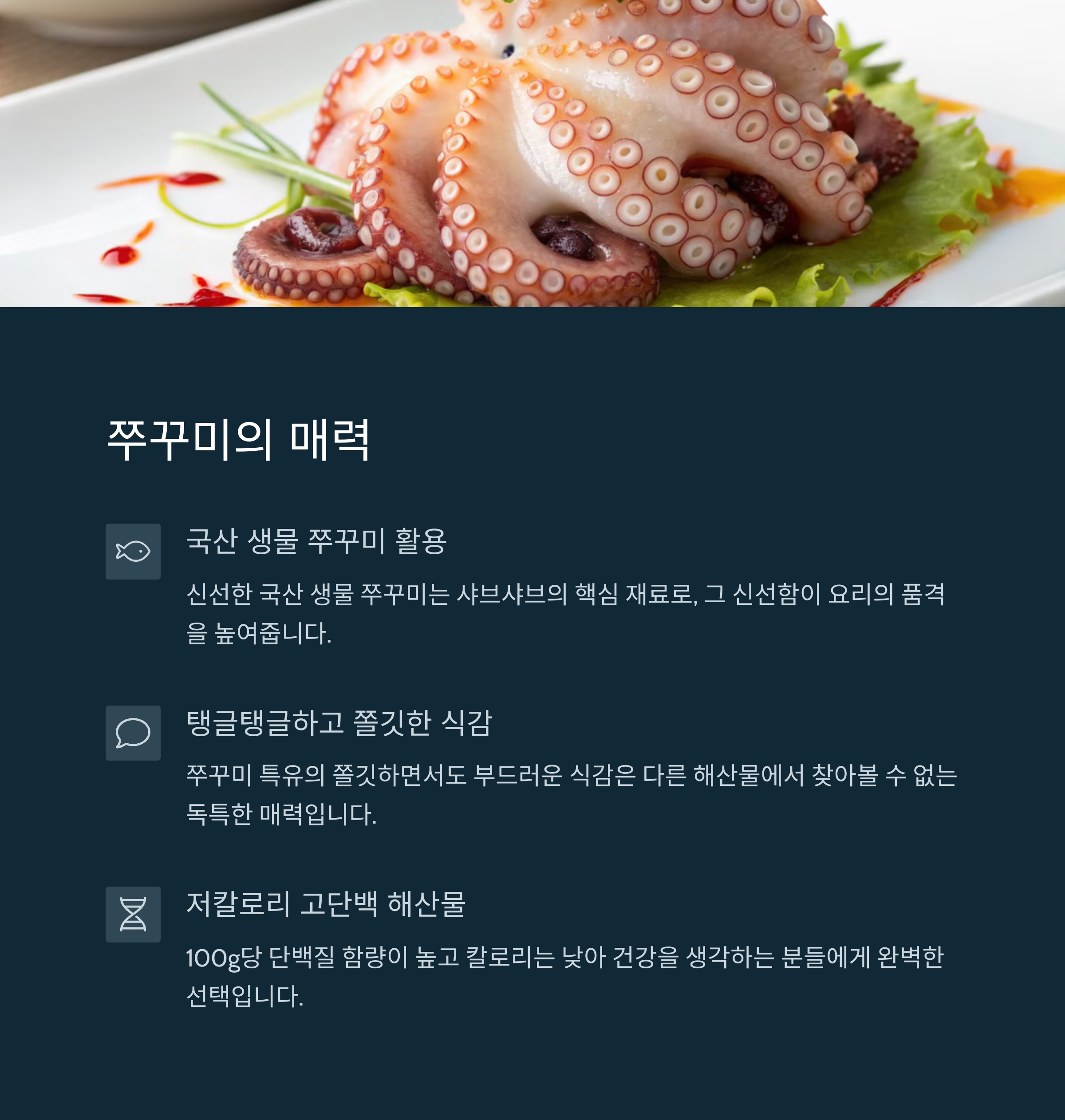 - 제철 해산물 선택