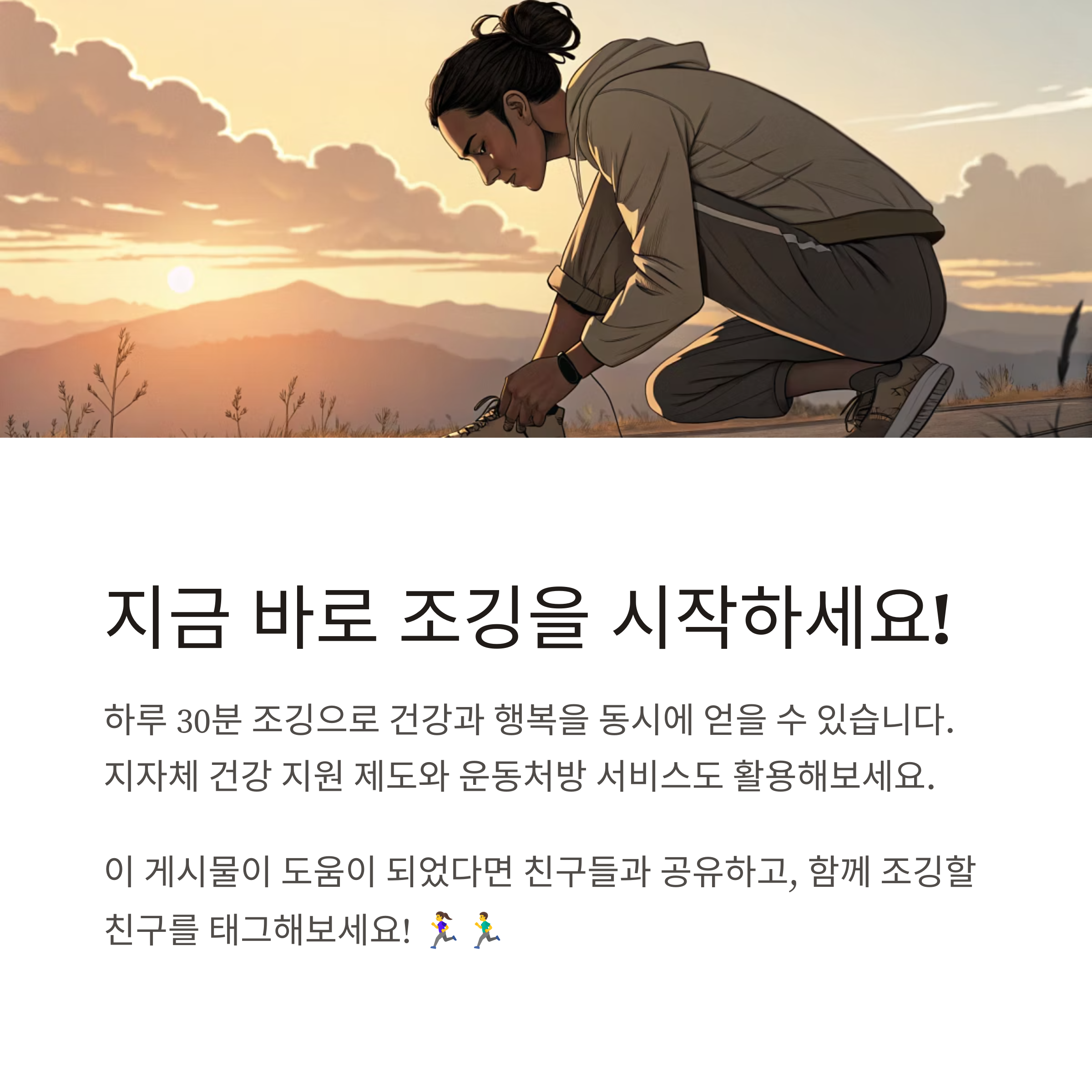 조깅은 복잡한 운동 계획 없이도 누구나 일상 속에서 쉽게 실천할 수 있는 건강한 습관입니다. 심혈관 기능 개선부터 스트레스 해소, 수면 질 향상까지, 몸과 마음 모두에 긍정적인 영향을 주는 조깅은 지금 가장 실용적이고 효율적인 유산소 운동으로 주목받고 있습니다. 다만, 부상을 예방하고 운동 효과를 극대화하려면 반드시 지켜야 할 주의사항들이 있습니다. 이 글에서는 조깅이 건강에 미치는 효과부터 실천법, 식습관, 계절별 전략, 최신 건강 트렌드까지 모두 정리해드립니다.