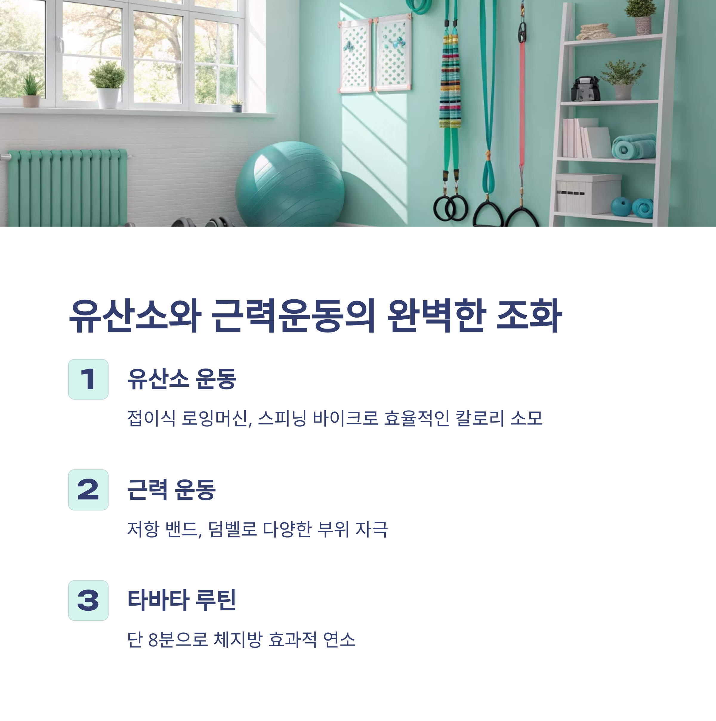 홈트레이닝의 핵심은 짧은 시간에 전신 운동 효과를 극대화하는 데 있습니다. 유산소 운동으로는 접이식 로잉머신과 스피닝 바이크가 인기를 끌고 있으며, 근력 운동은 저항 밴드, 덤벨을 활용해 다양한 부위를 자극할 수 있습니다. 전신 타바타 루틴은 단 8분으로도 체지방을 효과적으로 연소시킬 수 있어 바쁜 직장인에게도 적합합니다.