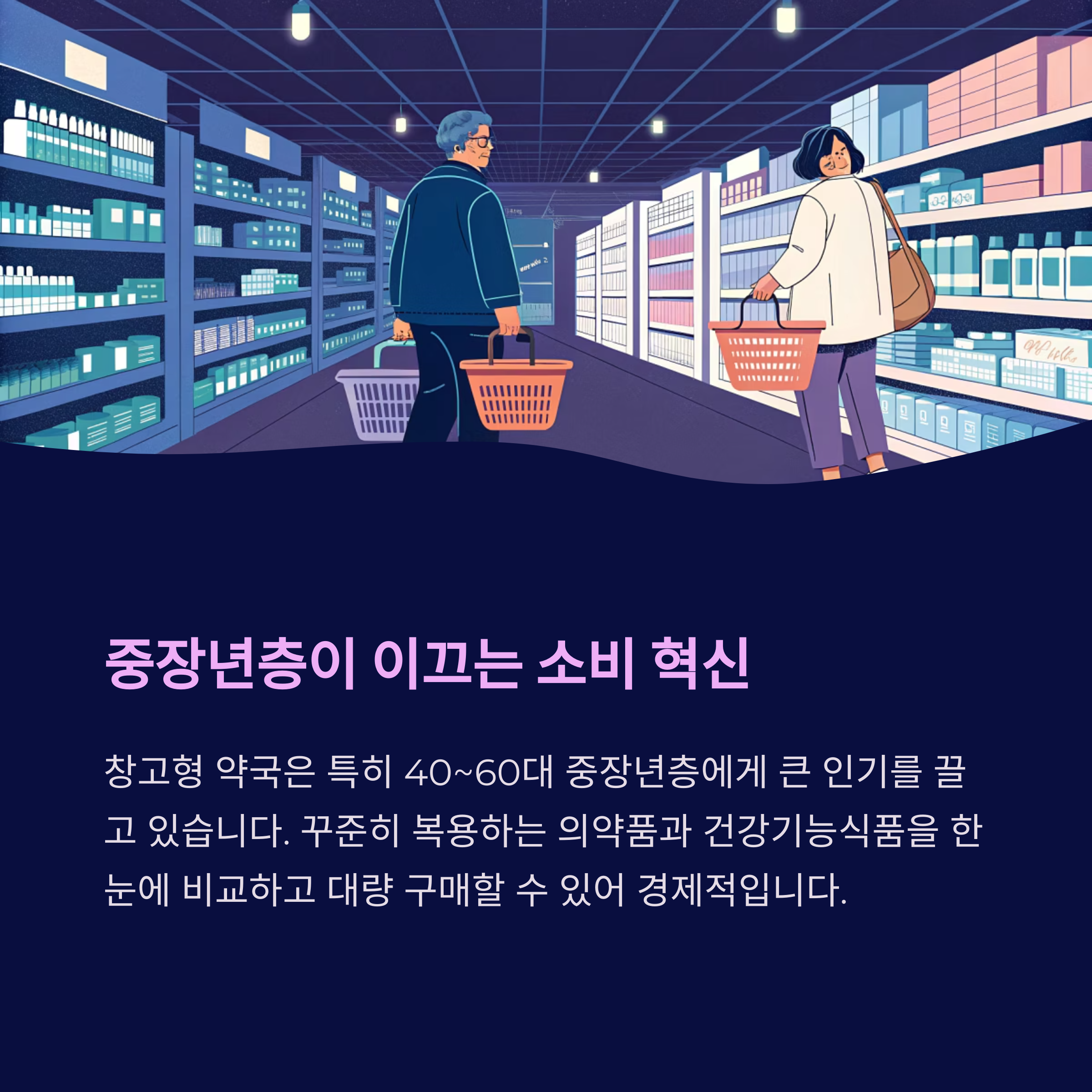 창고형 약국은 특히 중장년층 소비자들에게 인기가 높습니다.