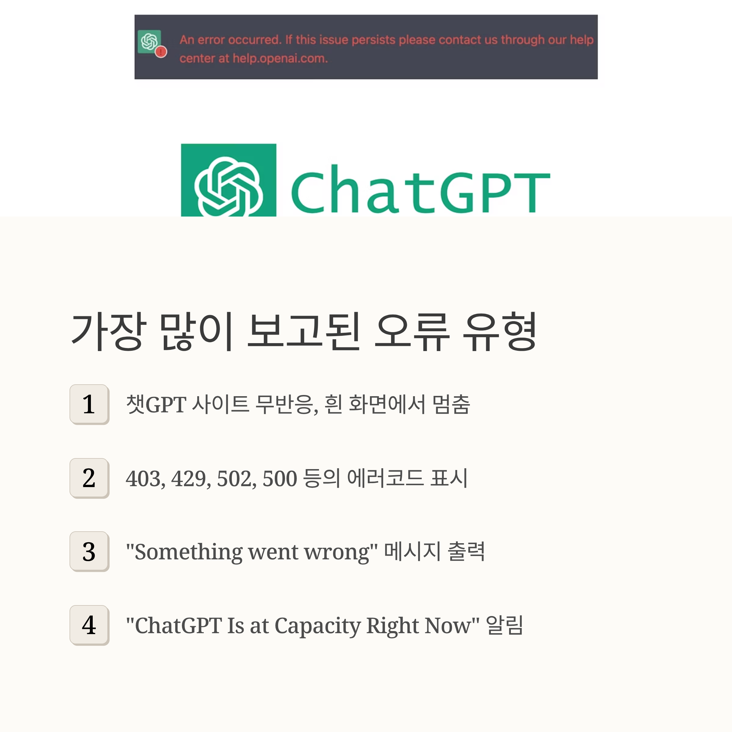 | 1단계 | OpenAI 서버 상태 페이지 확인 |
