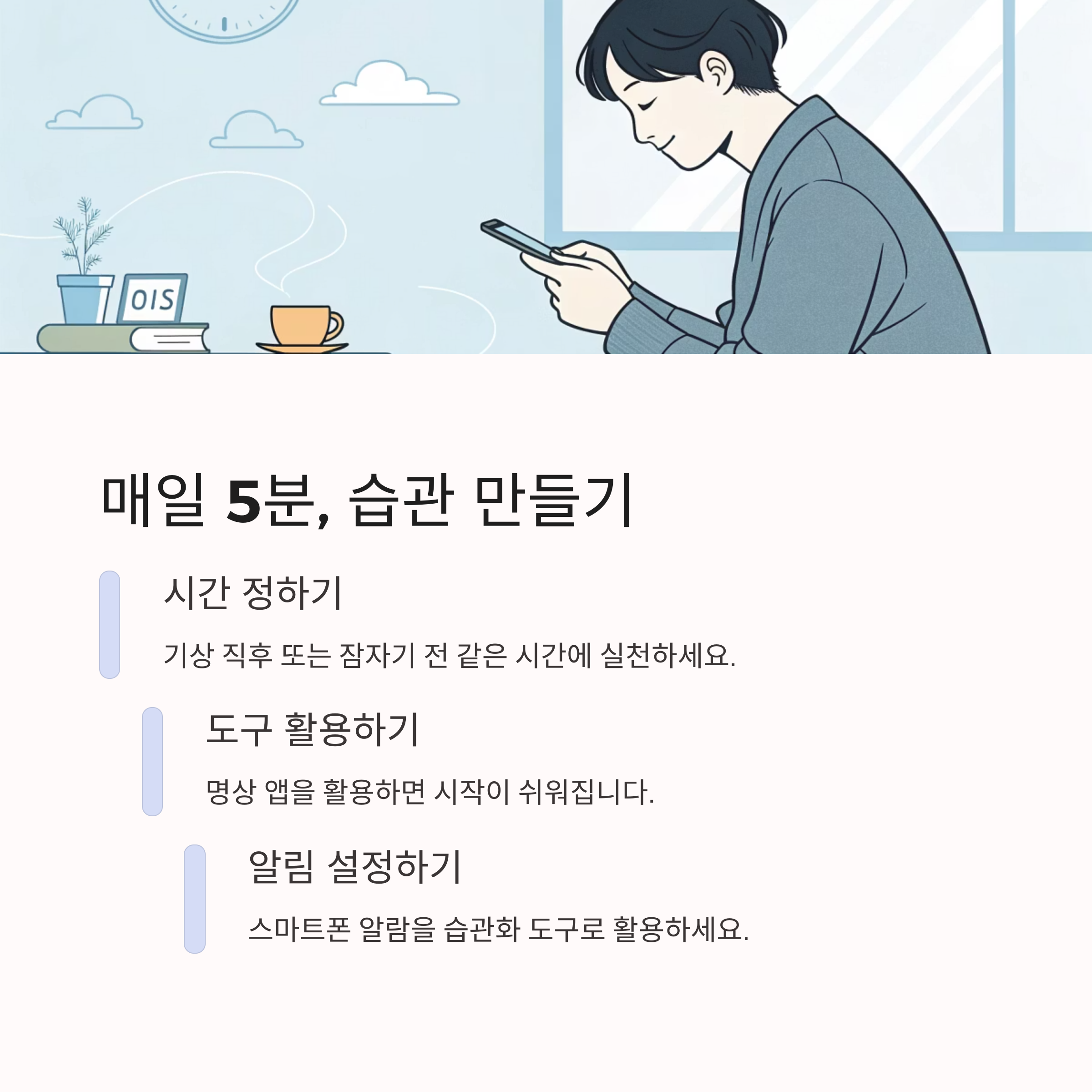 중요한 것은 매일 5분이라도 꾸준히 실천하며 자신만의 루틴을 만들어가는 것입니다.