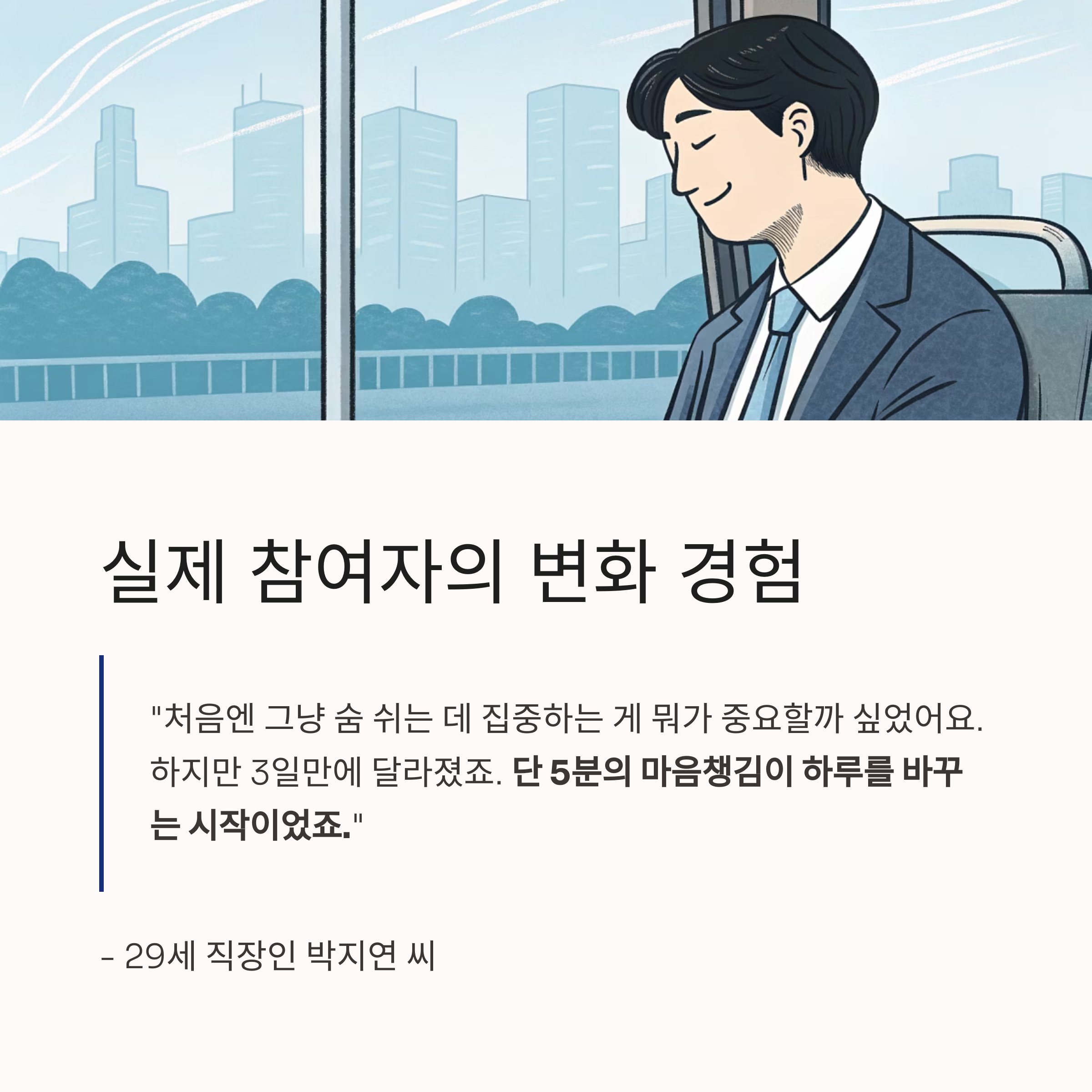 실제 참여자 인터뷰: "5분의 평화가 하루를 바꿨어요"