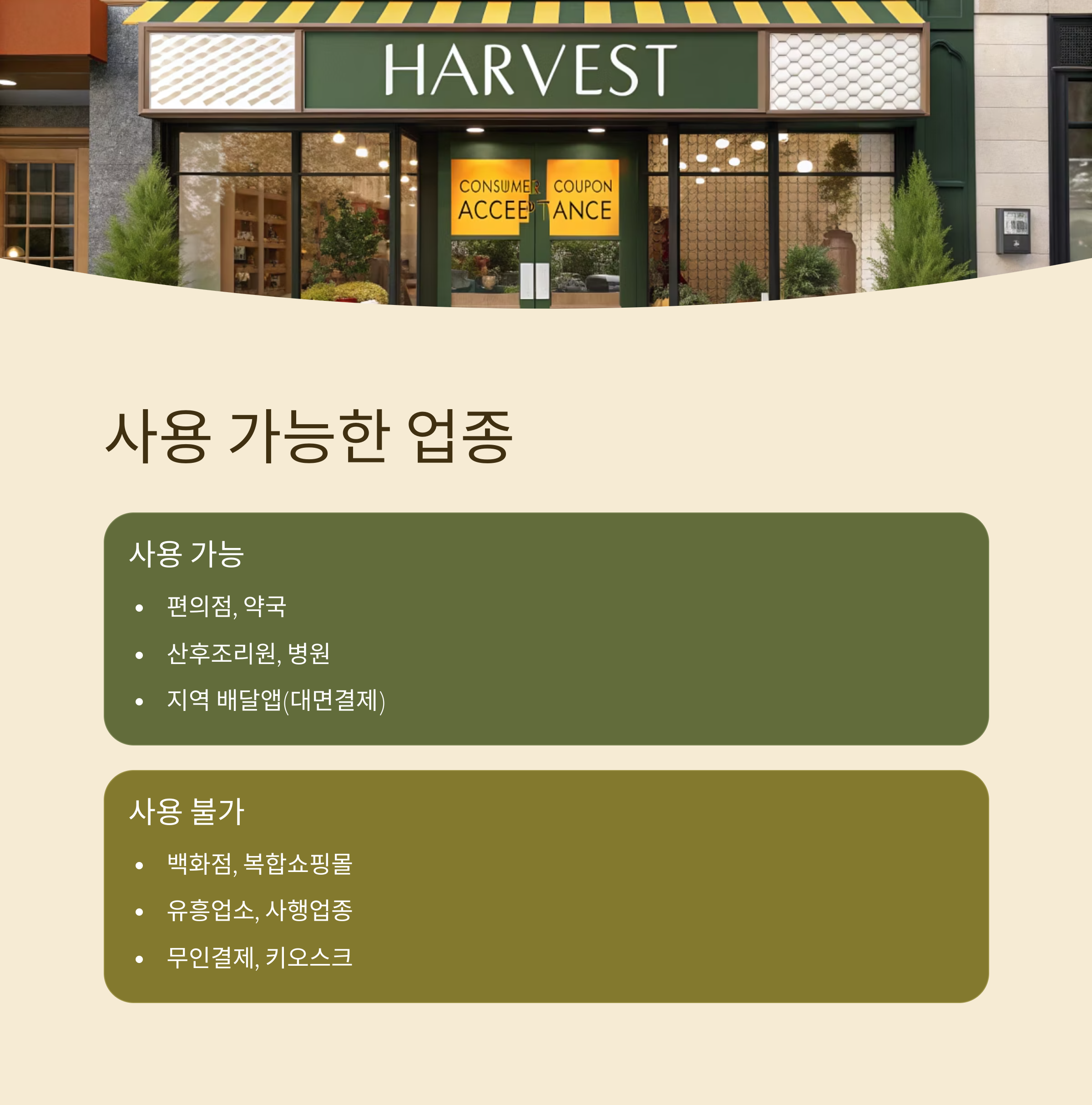 소비쿠폰, 사용 가능한 업종은 어디인가요?
