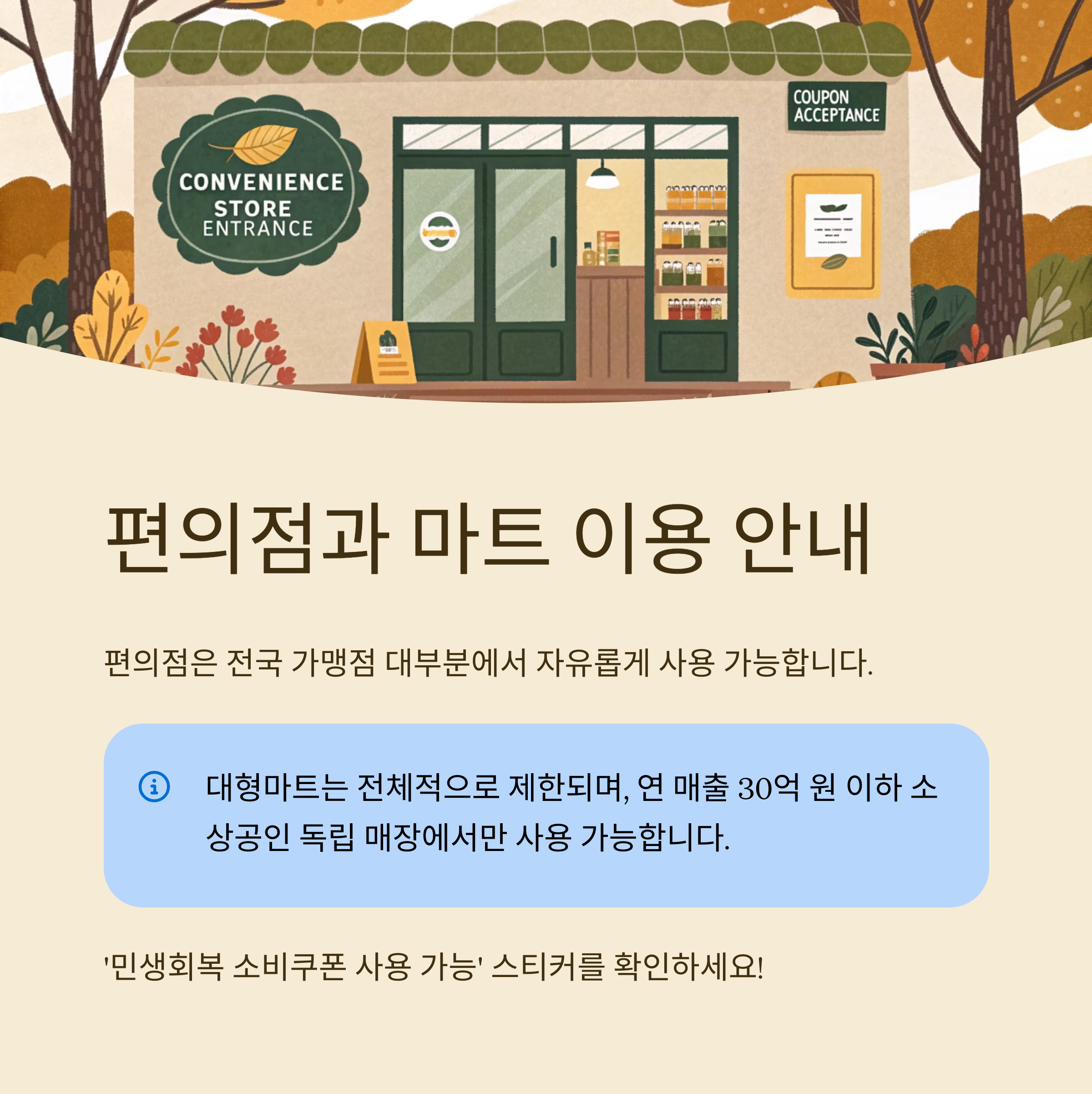 입구에 부착된 ‘민생회복 소비쿠폰 사용 가능’ 스티커를 확인하면 헷갈리지 않습니다.