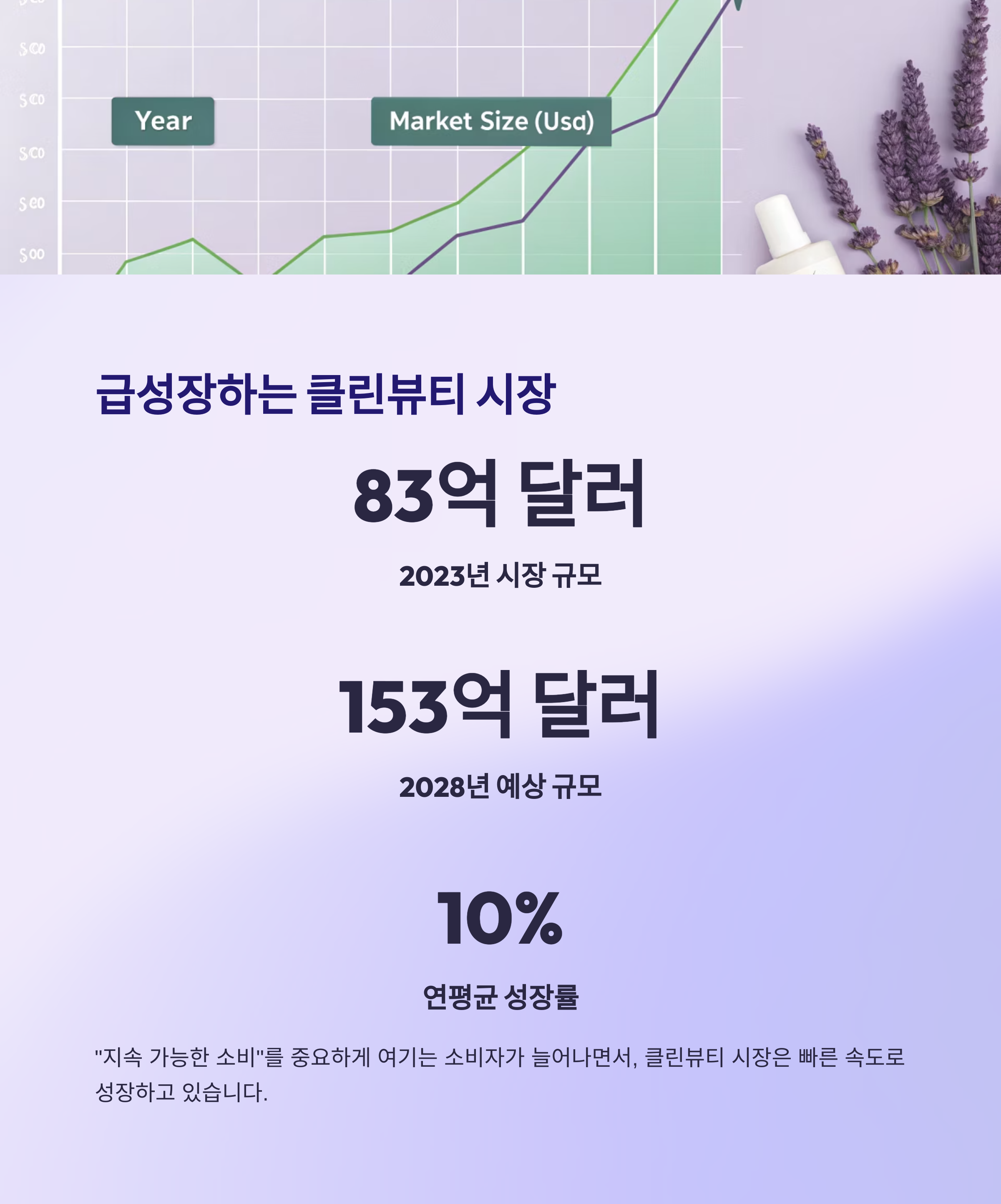 | 글로벌 클린뷰티 시장 | 83억 달러 | 153억 달러 | 약 10% |
