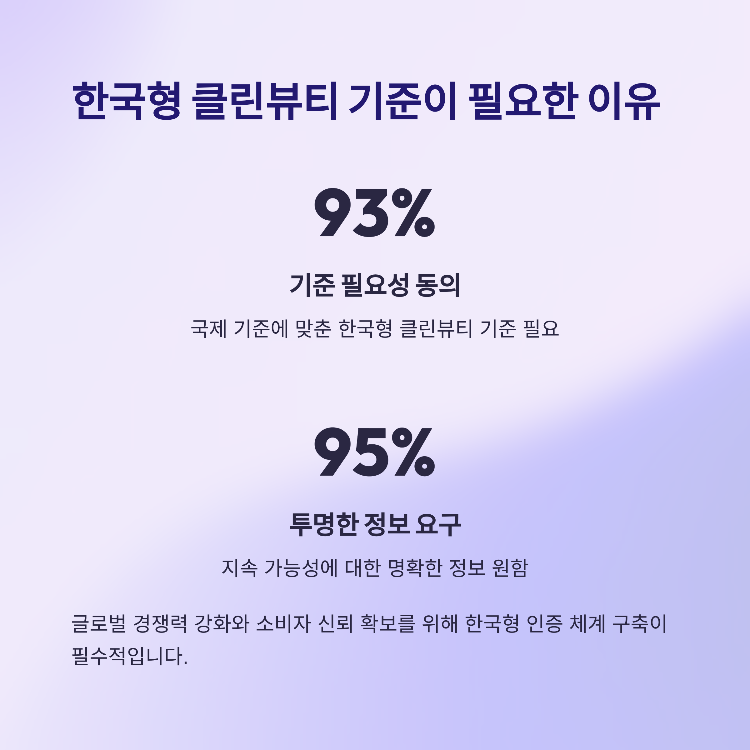 "93%의 소비자가 '국제 기준에 맞춘 한국형 클린뷰티 기준이 필요하다'고 응답했습니다."