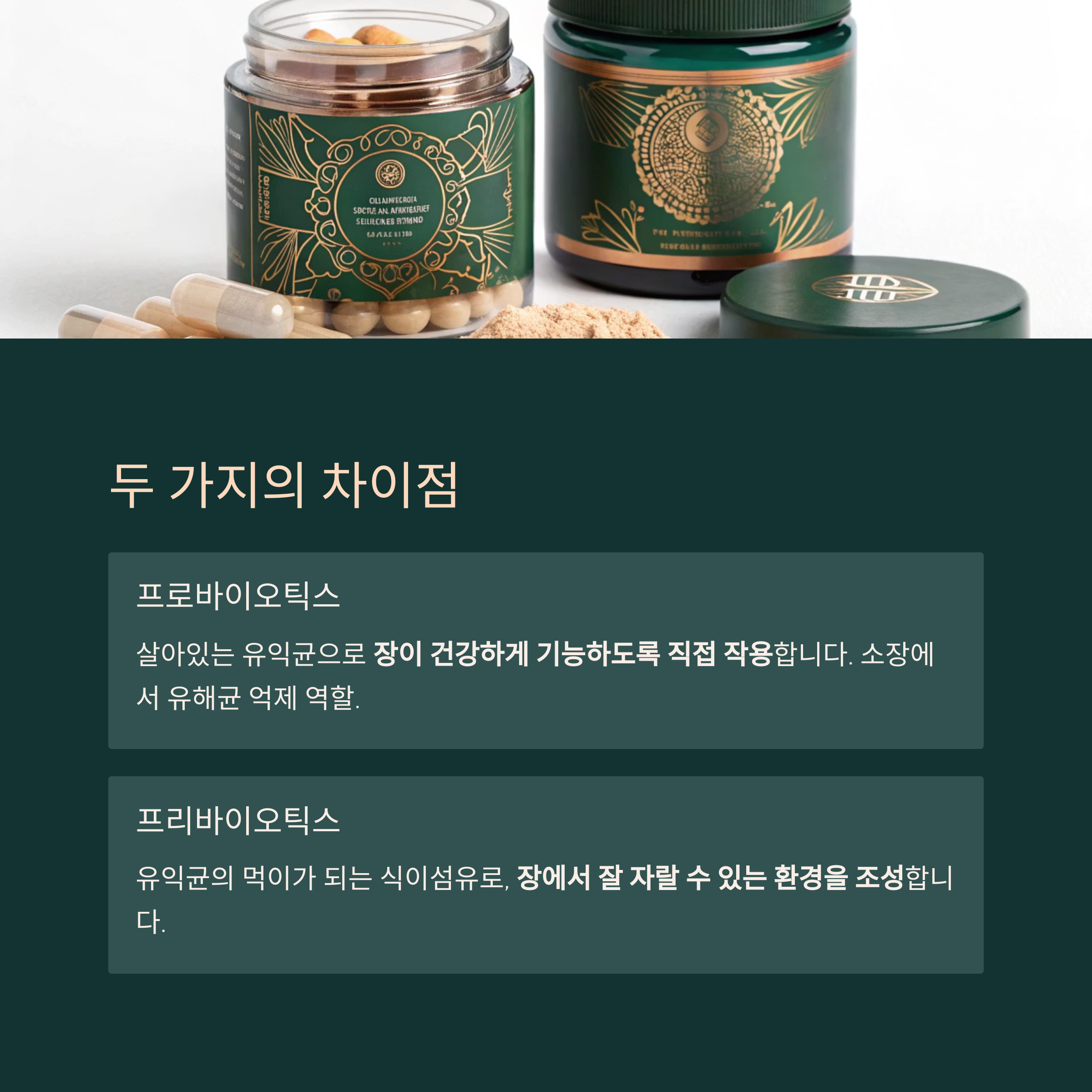 | 주요 성분 | 락토바실루스, 비피도박테리움 | 프락토올리고당, 이눌린 |