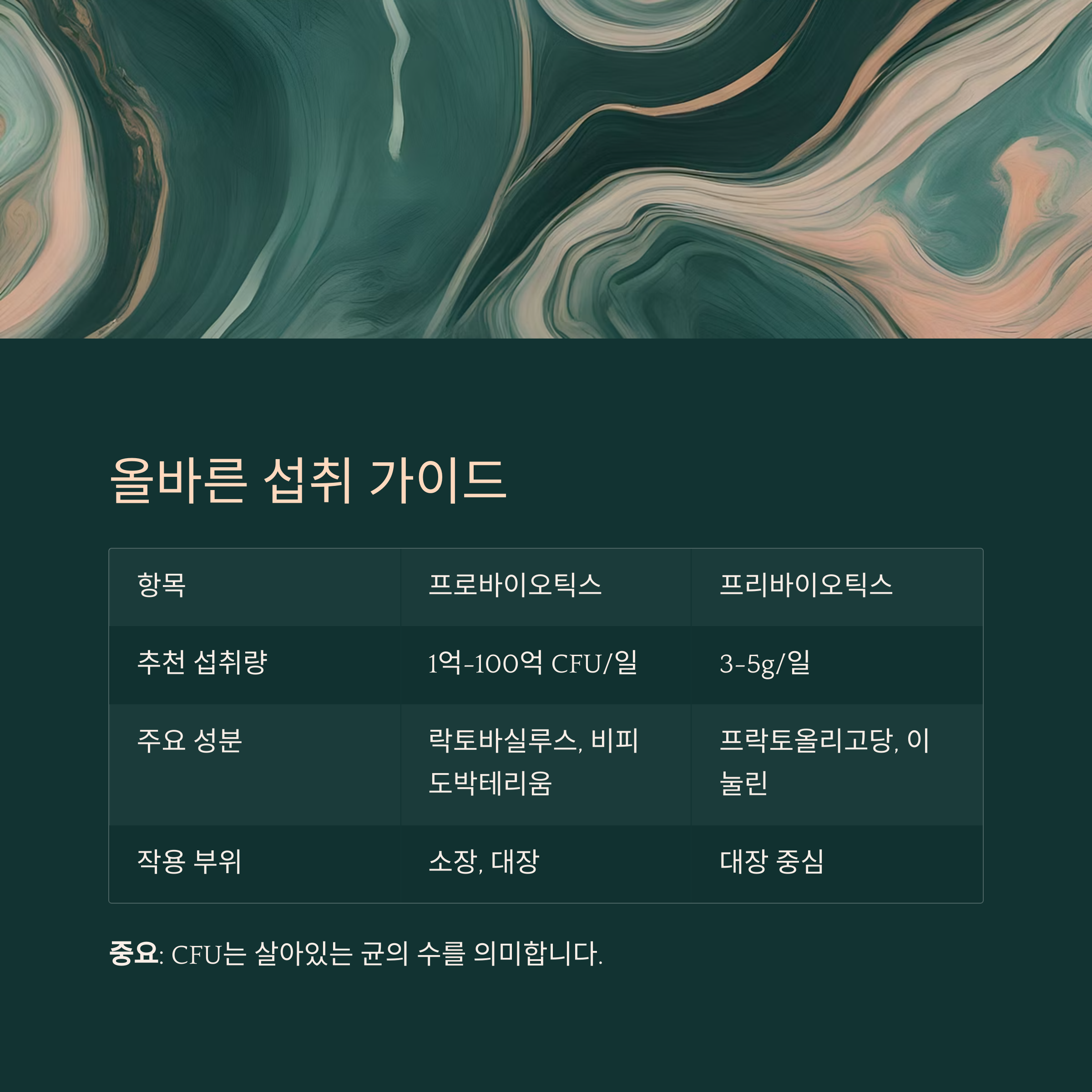 중요: CFU는 살아있는 균의 수를 의미하며, 제품에 명확히 표시되어 있어야 합니다.