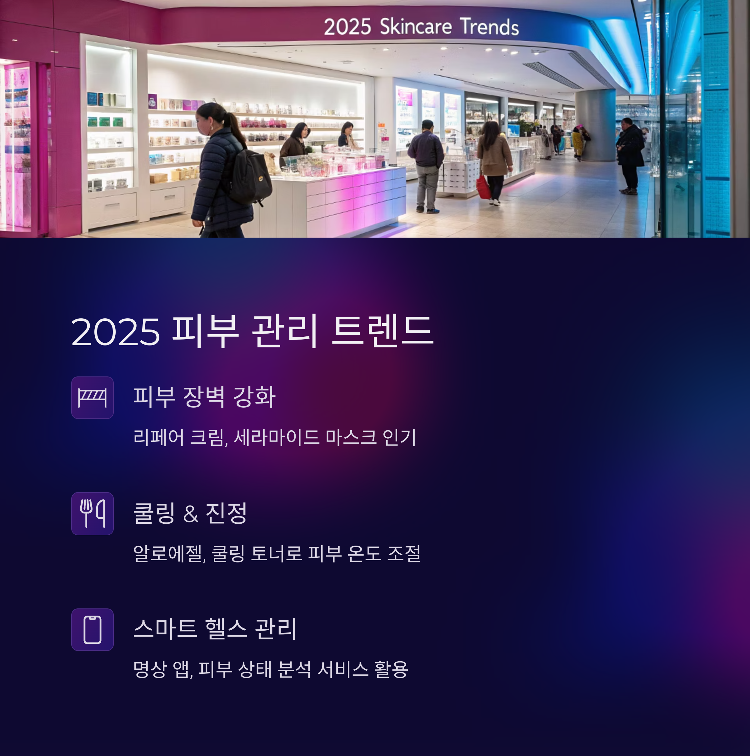 2025년 트렌드는 "피부 장벽 강화", "맞춤형 스킨케어", "쿨링" 중심입니다