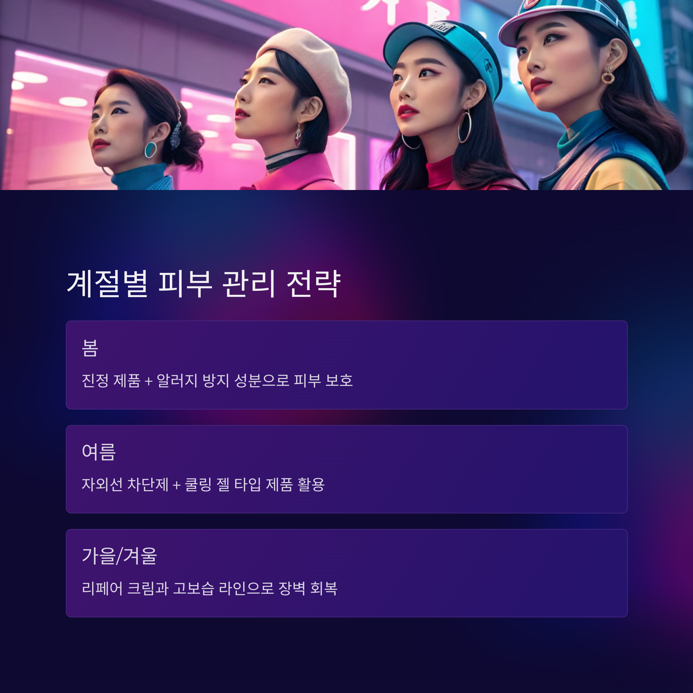 | 겨울 | 수분+유분 복합 제품으로 보완 |