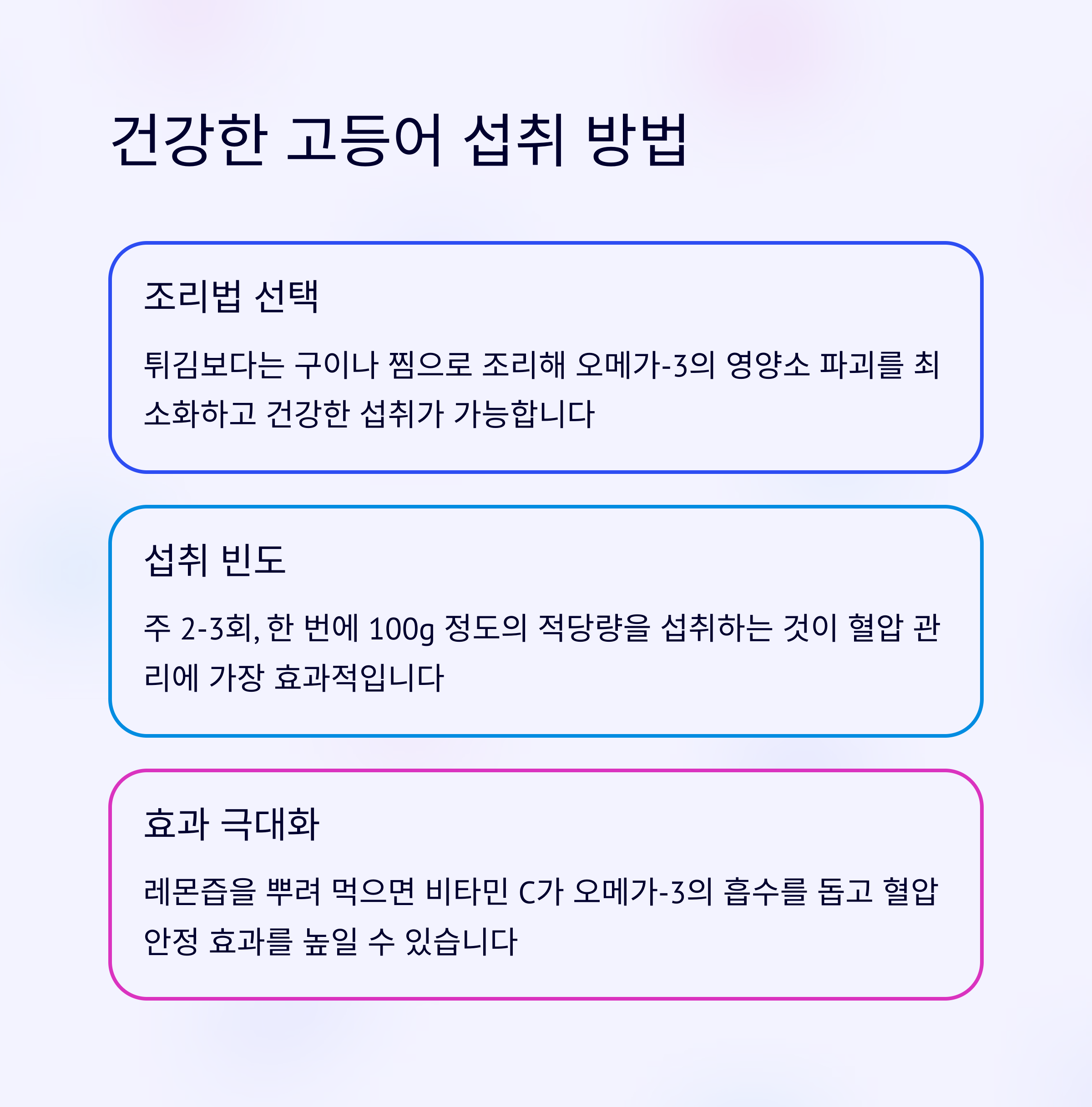 주의: 과도한 섭취, 기름에 튀긴 고등어는 오히려 해로울 수 있습니다. 주 2~3회 섭취가 적당합니다.