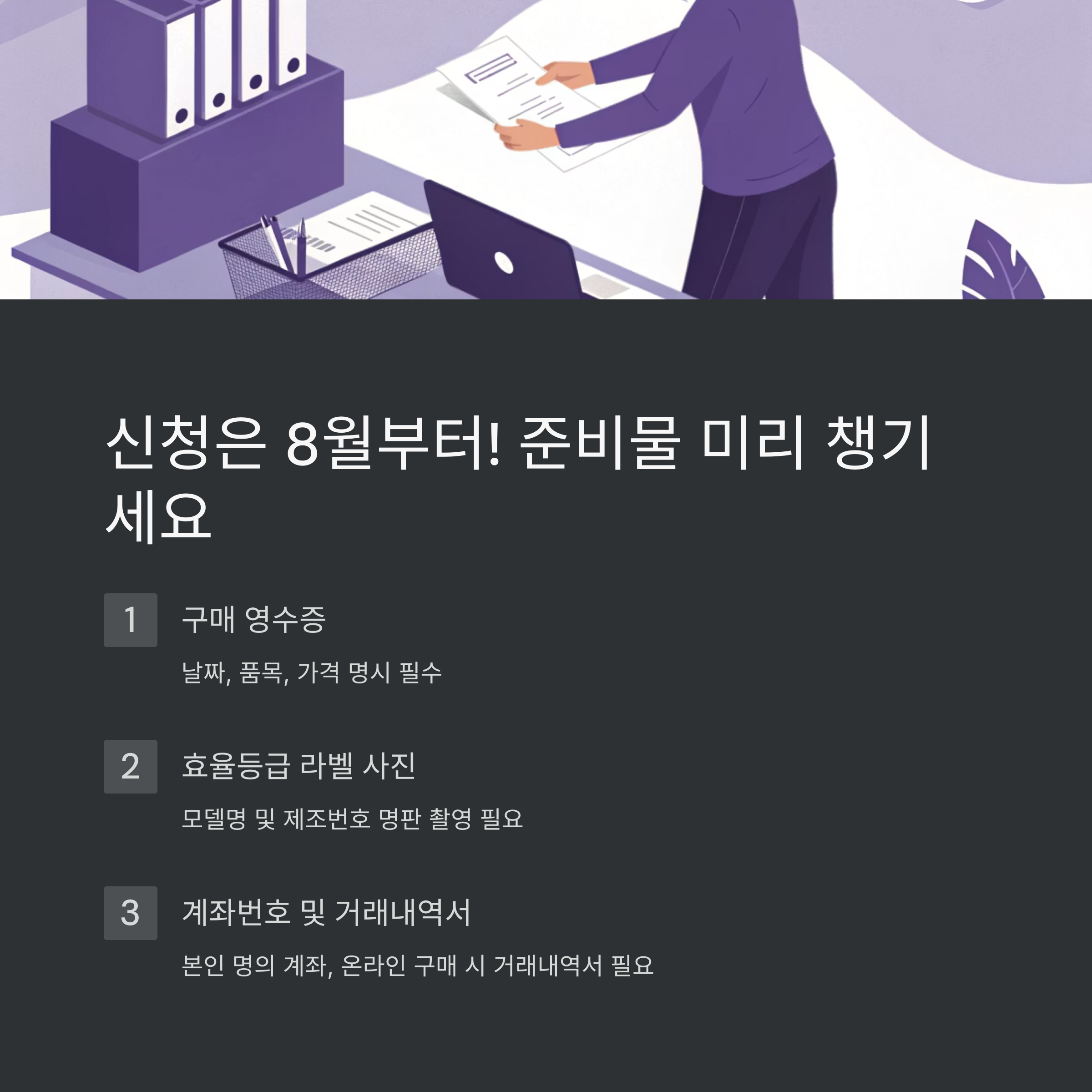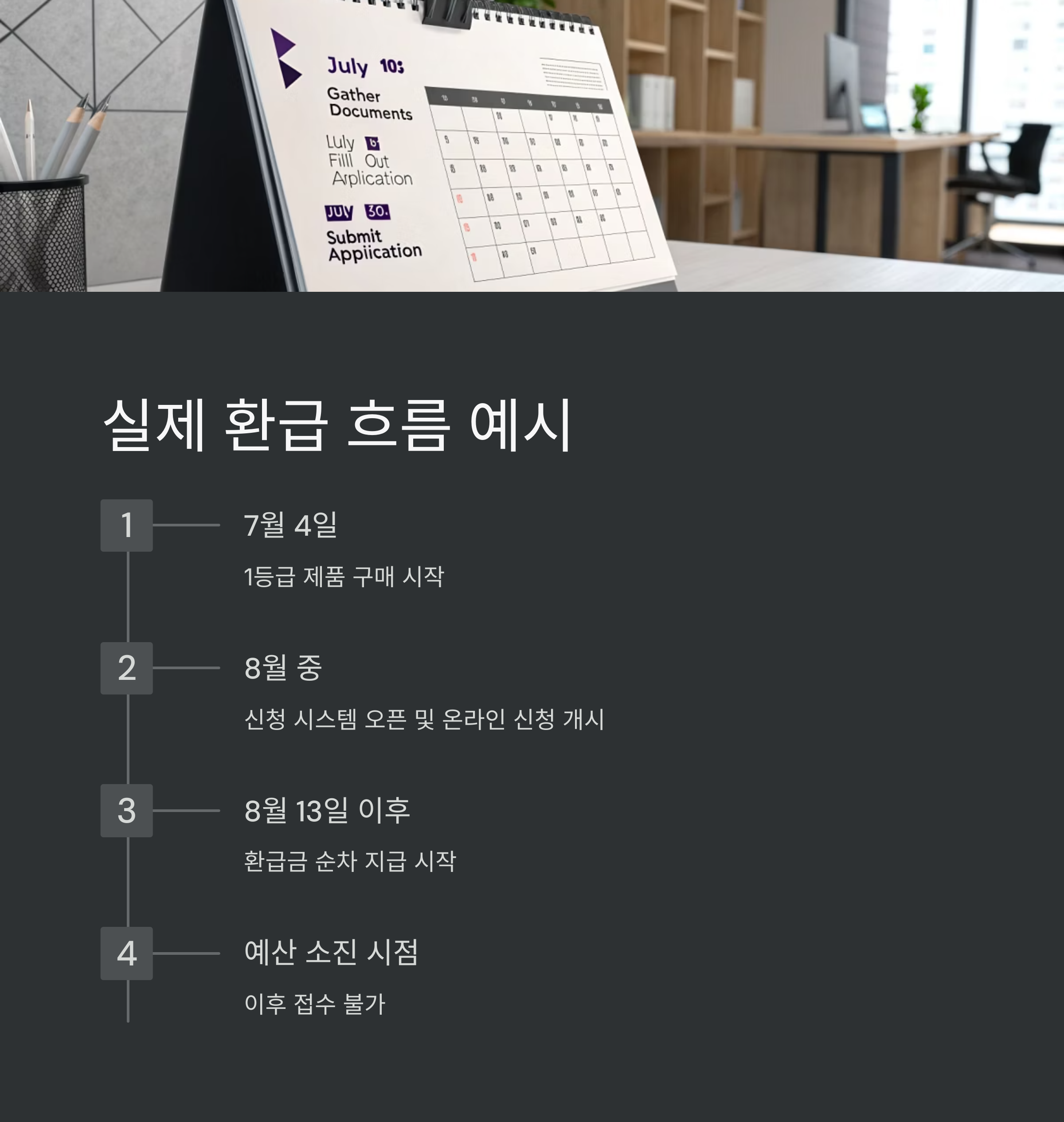 따라서 7월에 제품을 구매한 소비자는 지금이 서류 준비의 핵심 타이밍이며, 8월 시스템 오픈 즉시 신청해야 합니다.